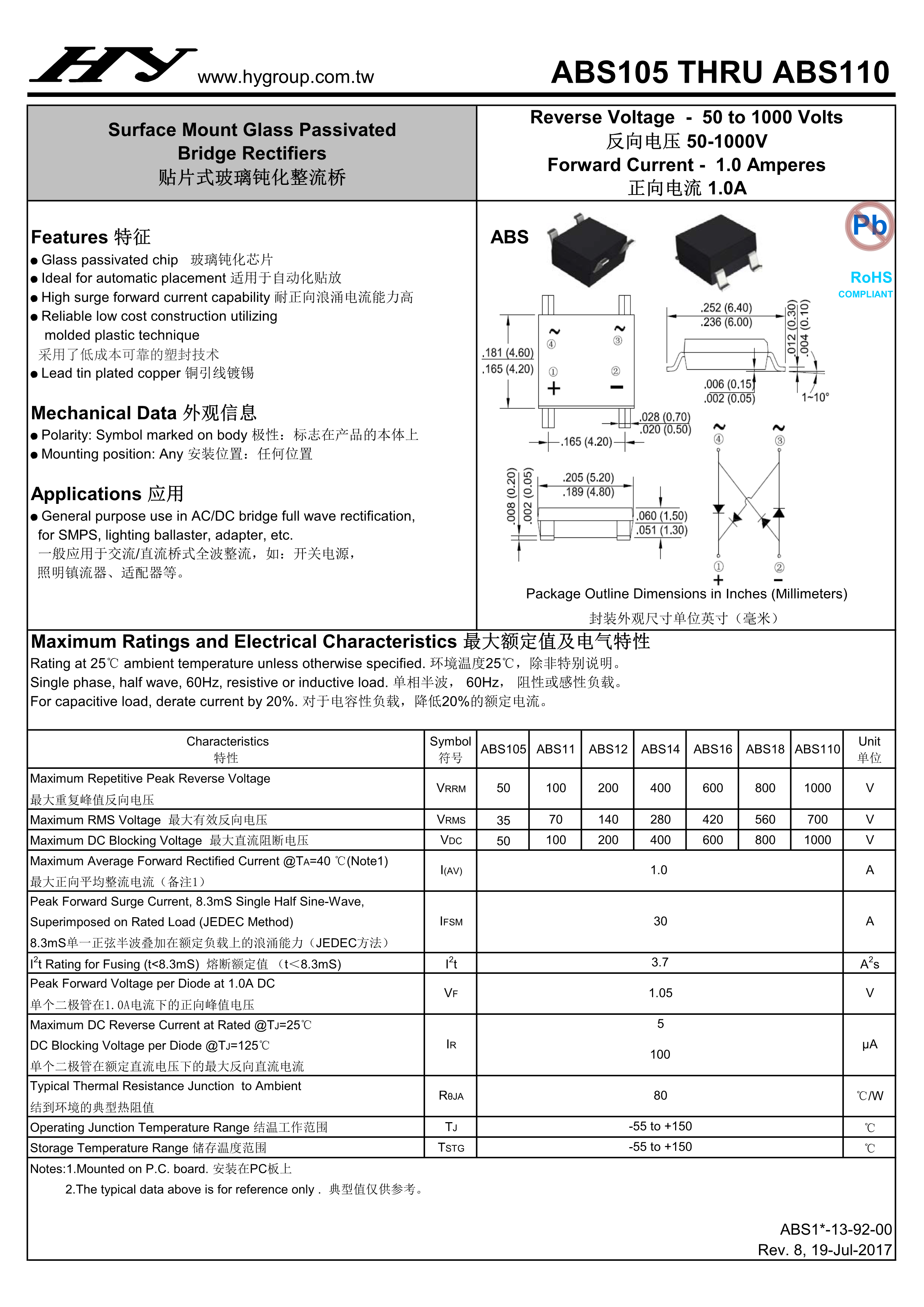 ABS18数据手册ABS封装HY(虹扬)PDF规格书,中英文下载