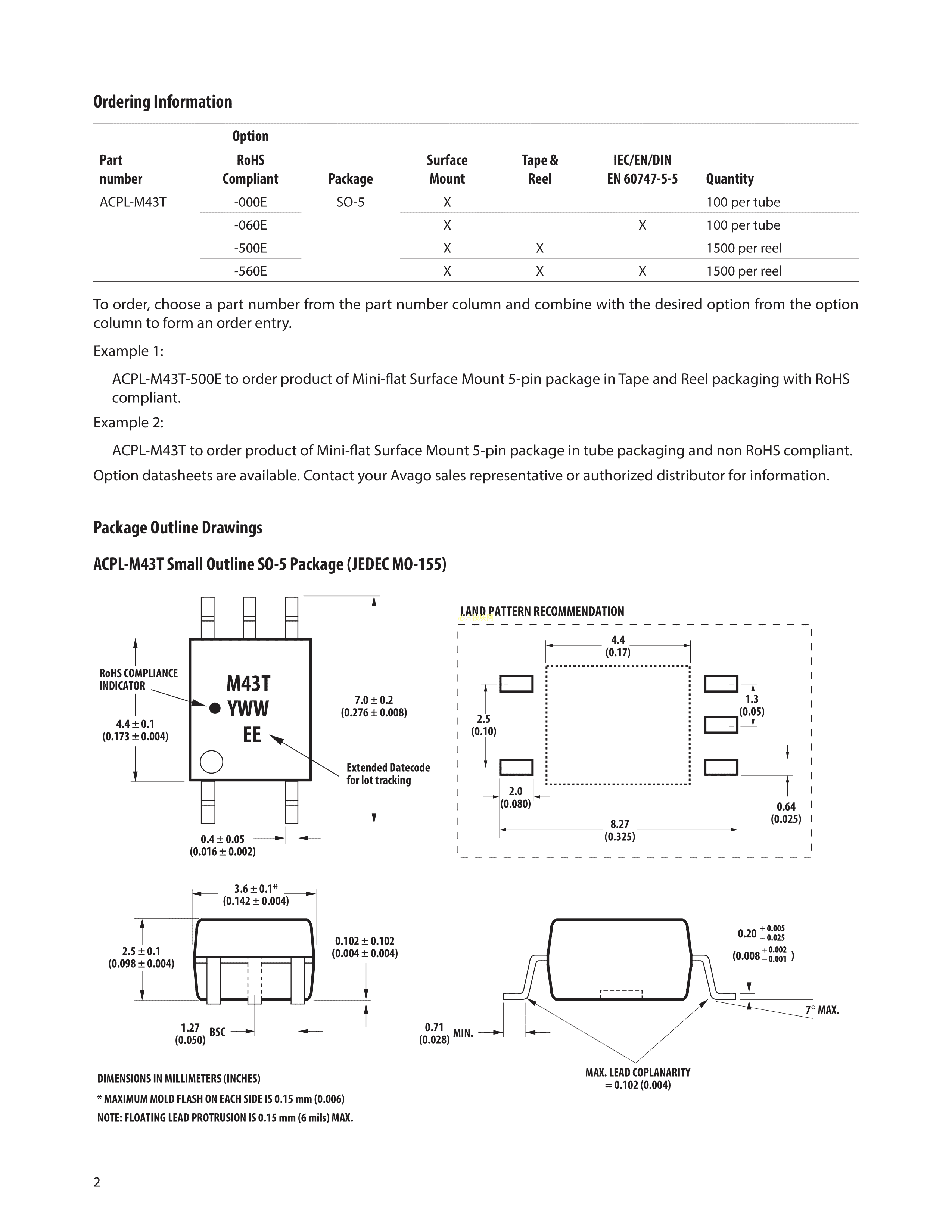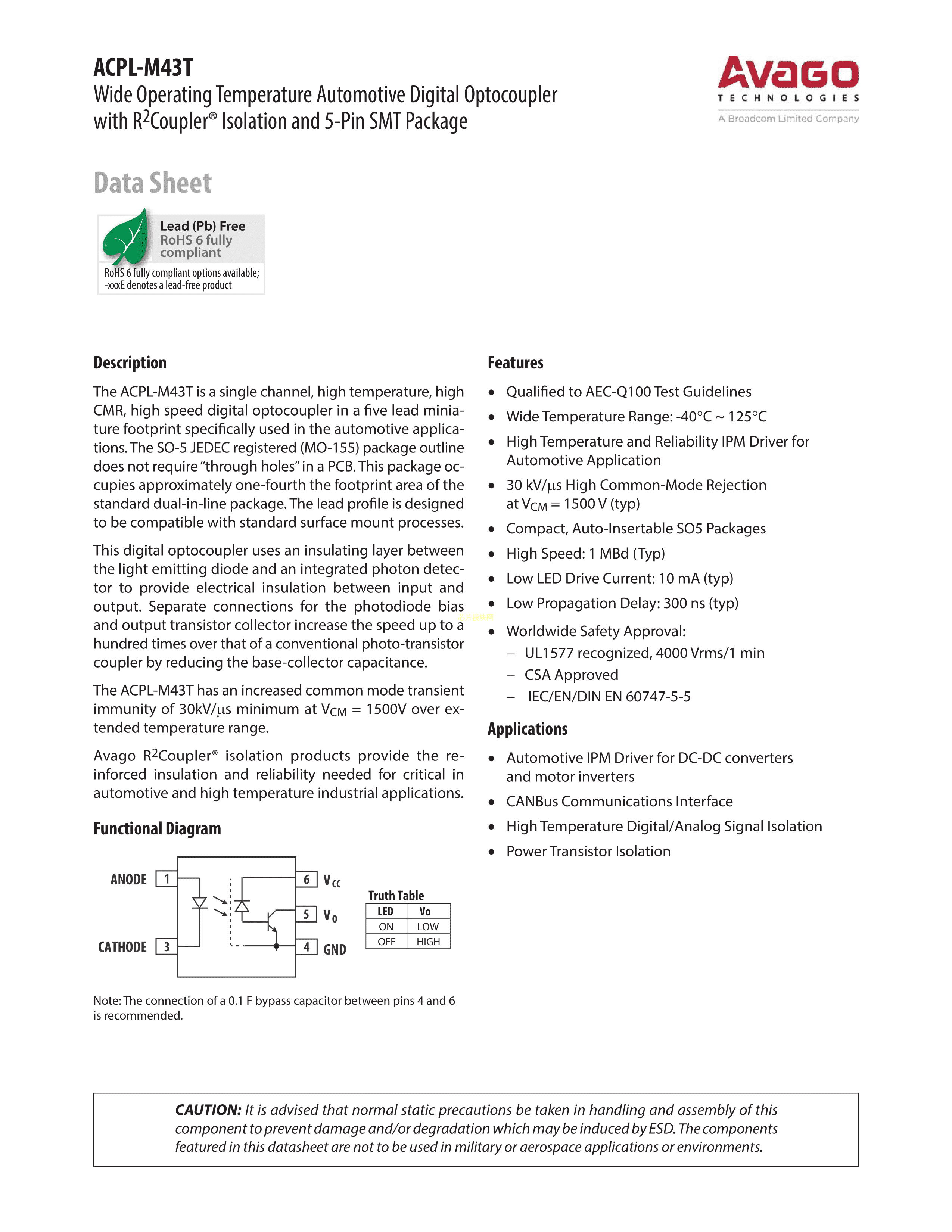 ACPL-M43T-500E数据手册SO-5封装AVAGO(安华高)PDF规格书,中英文下载
