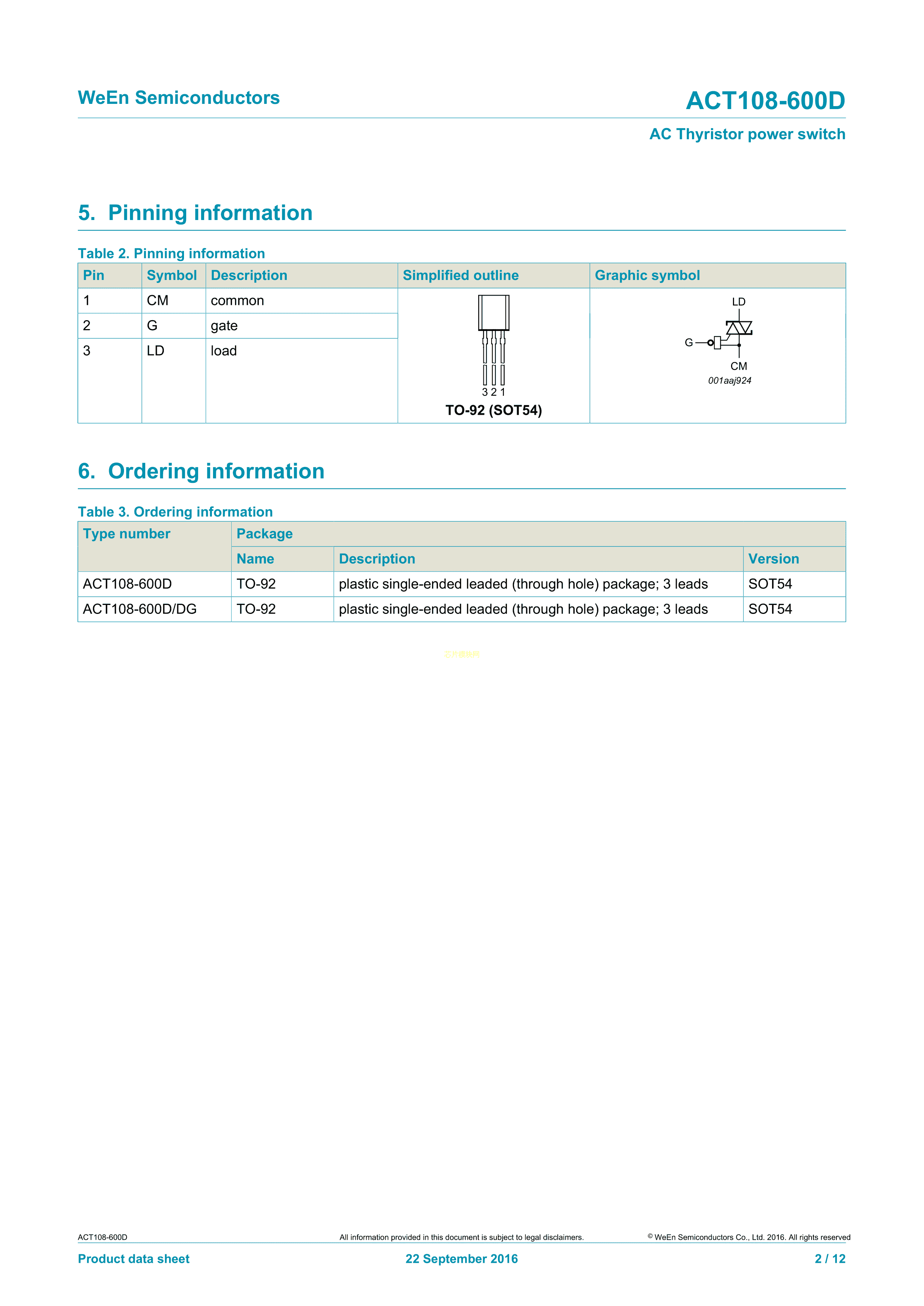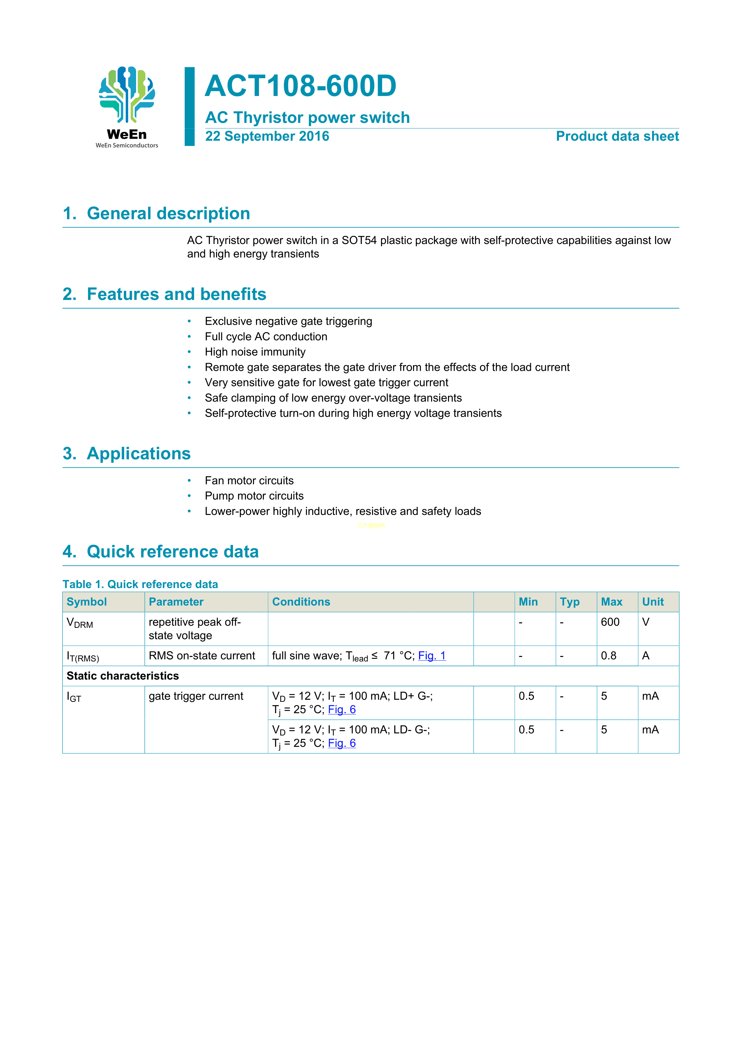 ACT108-600D-DG126数据手册SOT-54封装WeEn(瑞能)PDF规格书,中英文下载