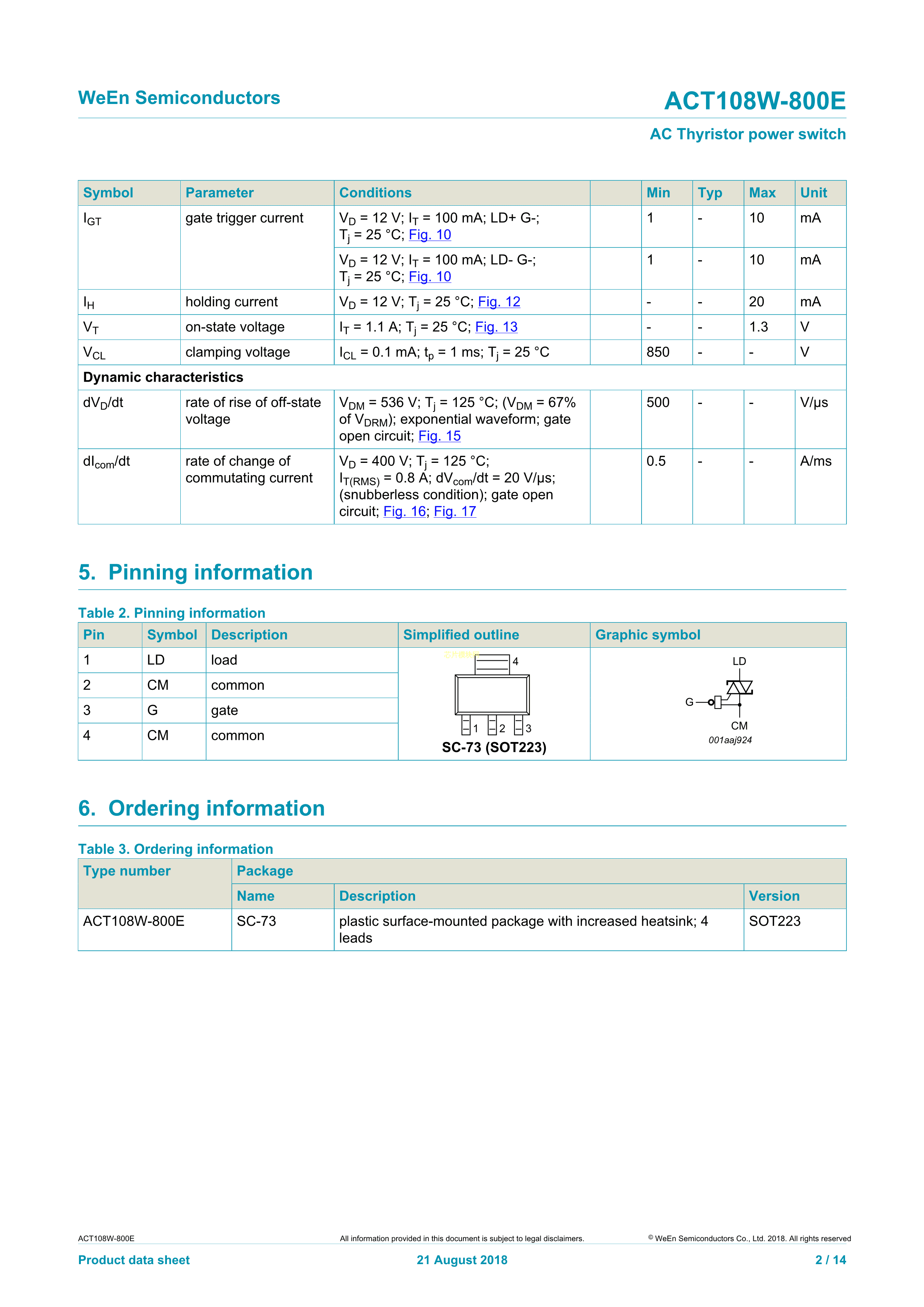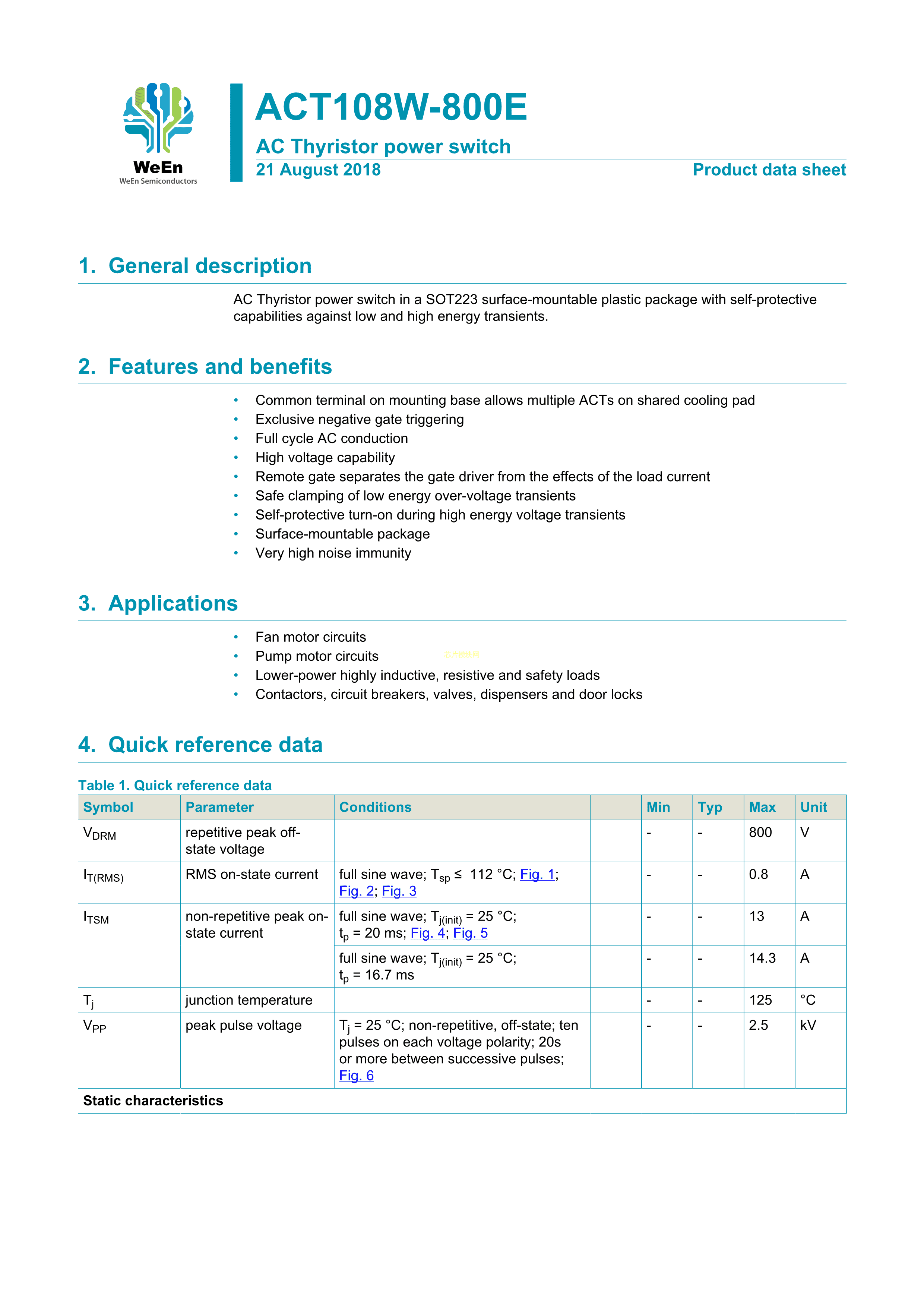 ACT108W-800EF数据手册SOT-223封装WeEn(瑞能)PDF规格书,中英文下载