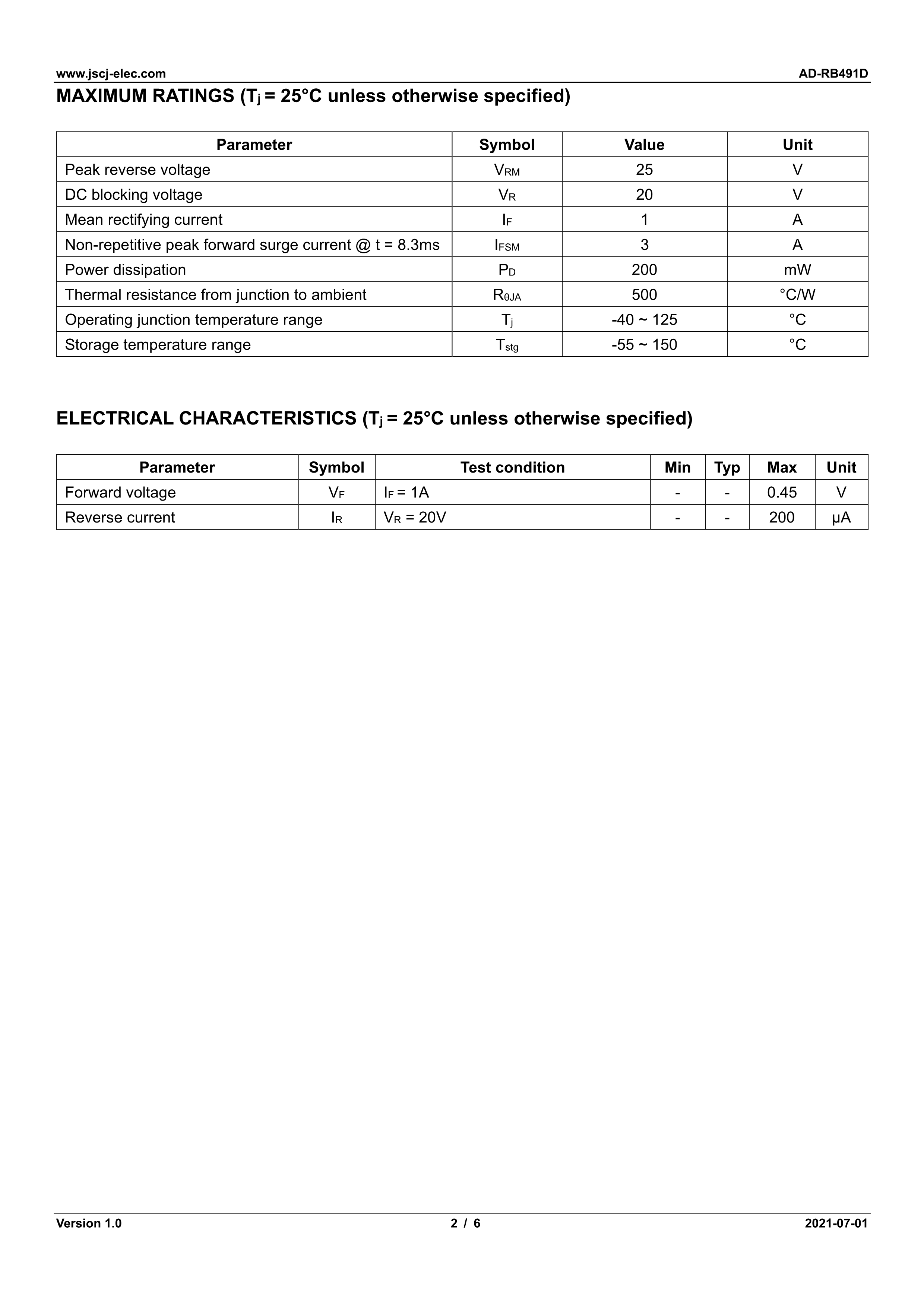 AD-RB491D数据手册SOT-23封装CJ(江苏长电-长晶)PDF规格书,中英文下载