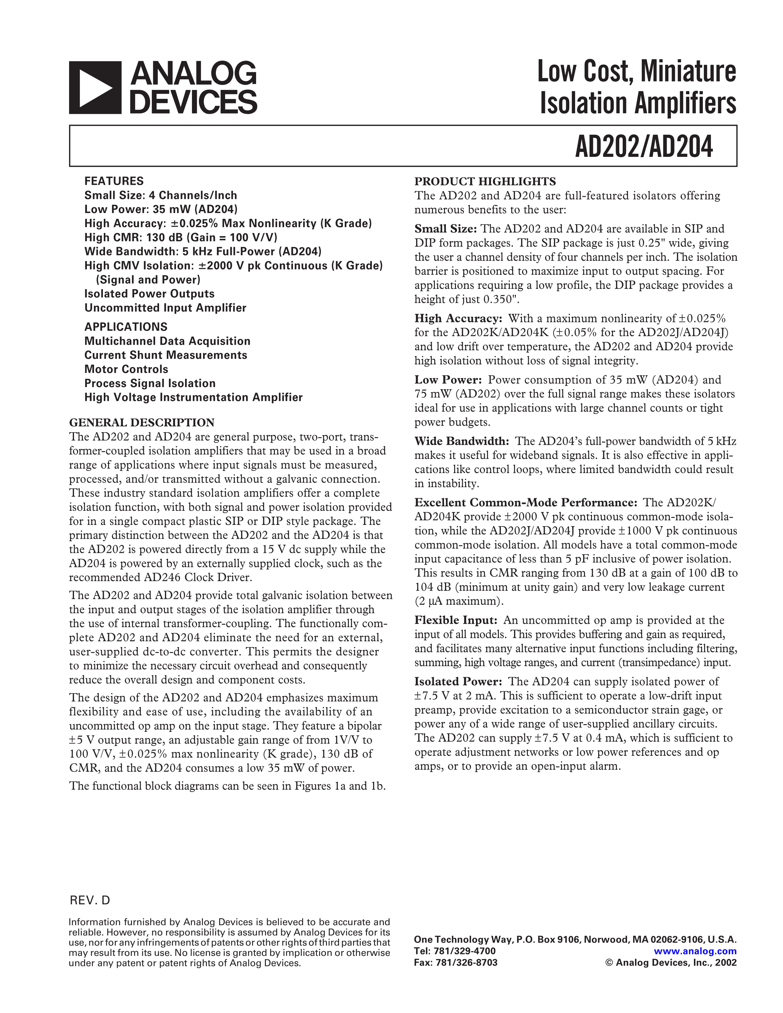 AD202KN数据手册DIP封装ADI(亚德诺)-LINEARPDF规格书,中英文下载
