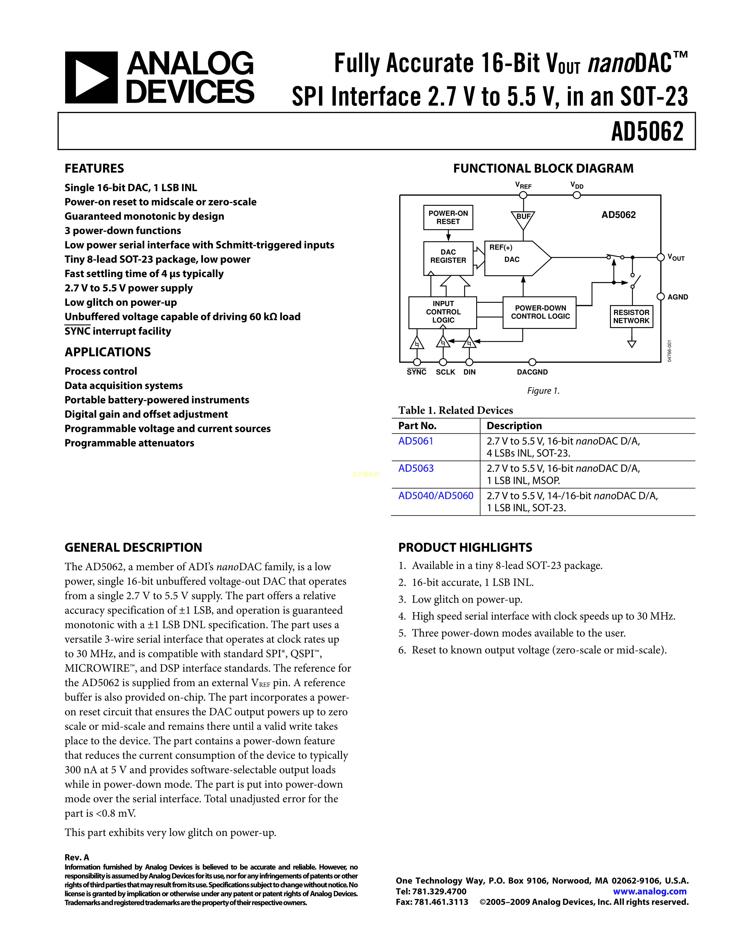 AD5062BRJZ-1500RL7数据手册SOT-23-8封装ADI(亚德诺)-LINEARPDF