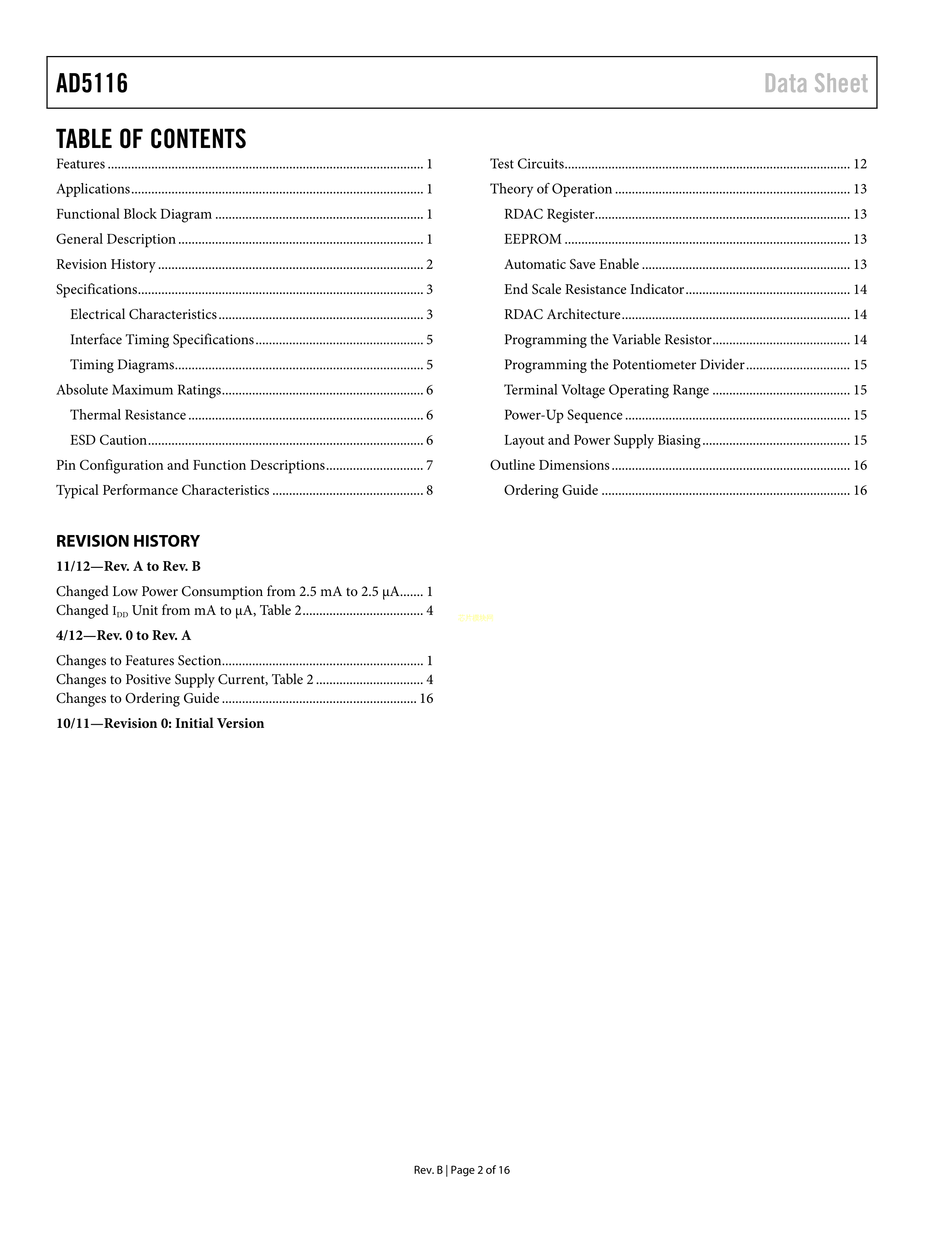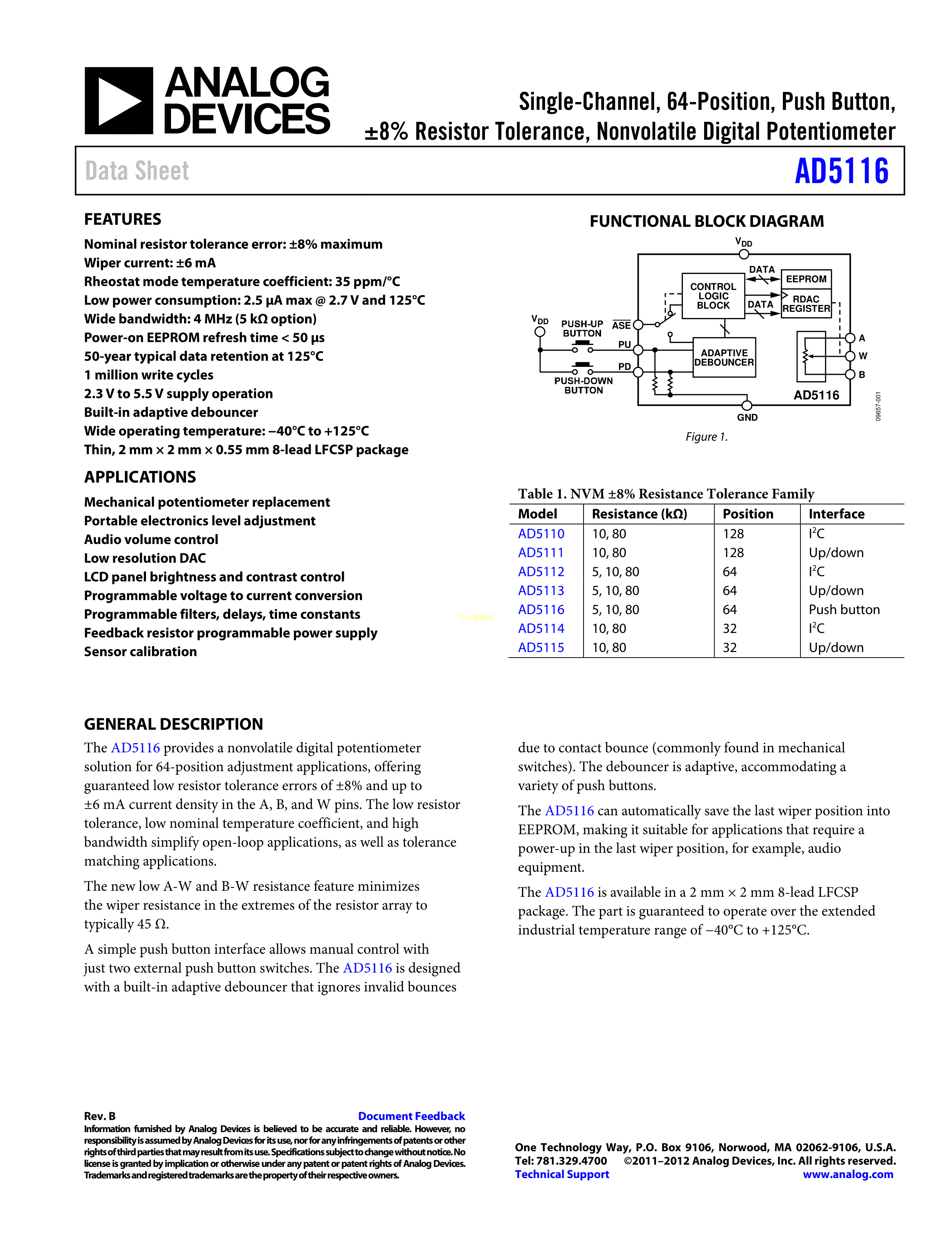AD5116BCPZ10-RL7数据手册LFCSP-8封装ADI(亚德诺)-LINEARPDF规格书
