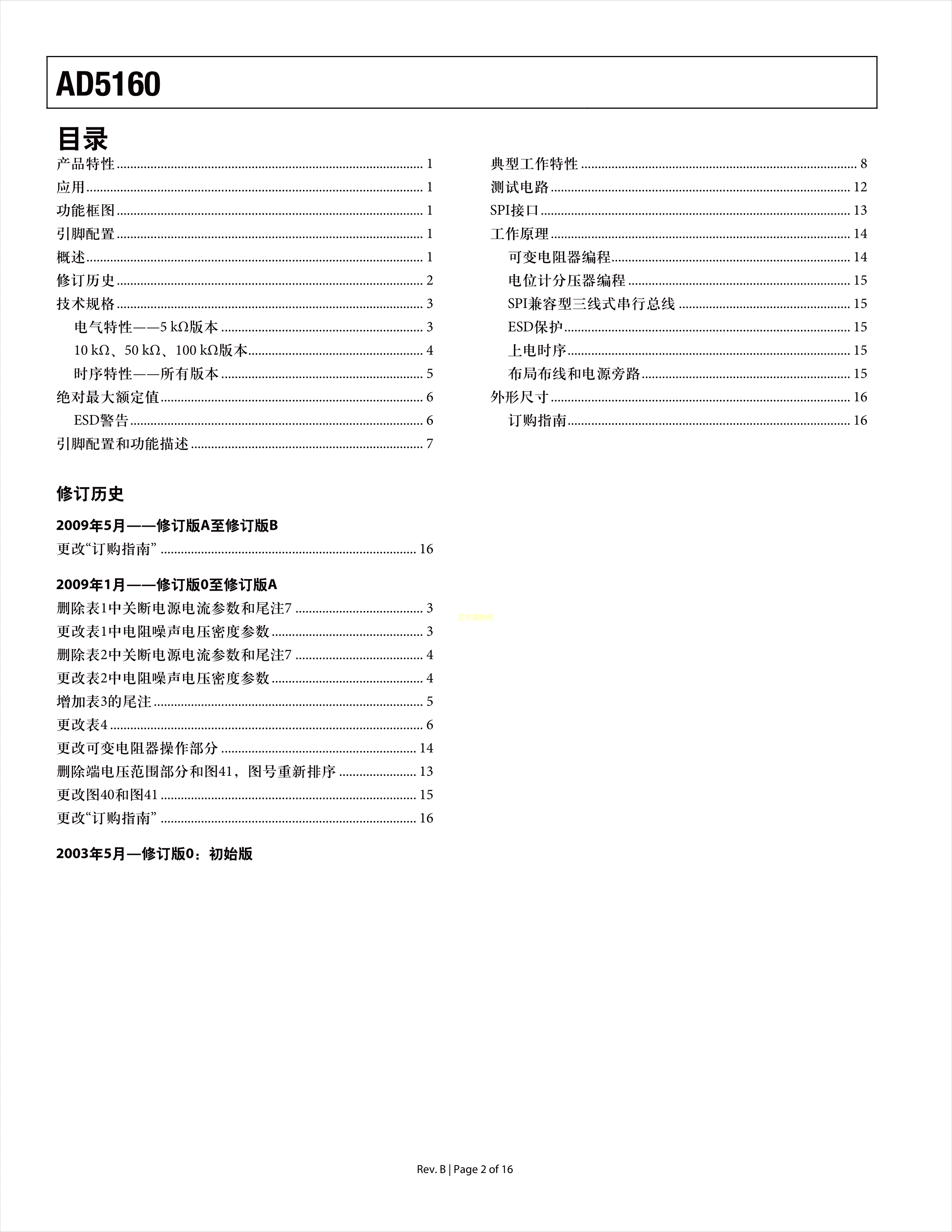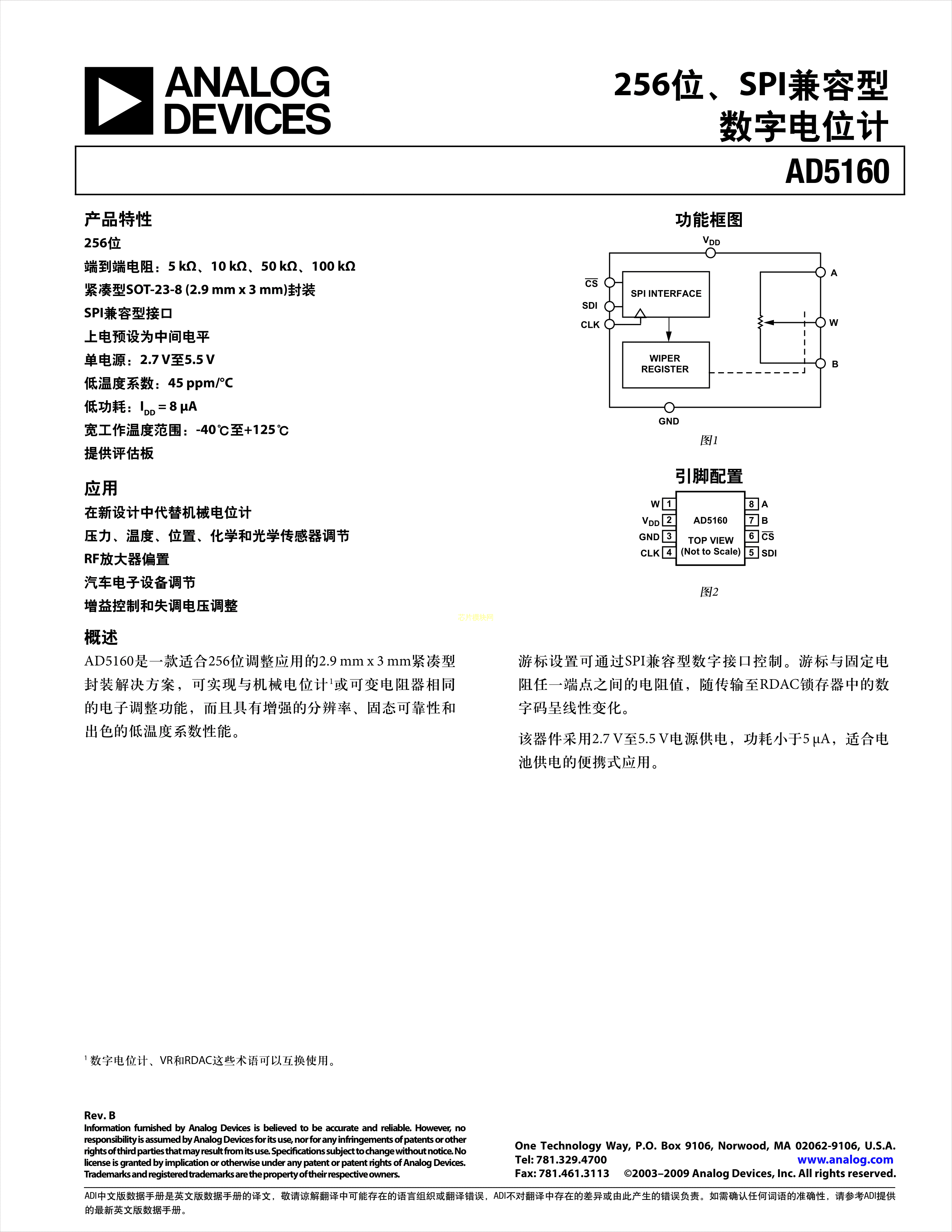 AD5160BRJZ10-R2数据手册SOT-23-8封装ADI(亚德诺)-LINEARPDF规格书