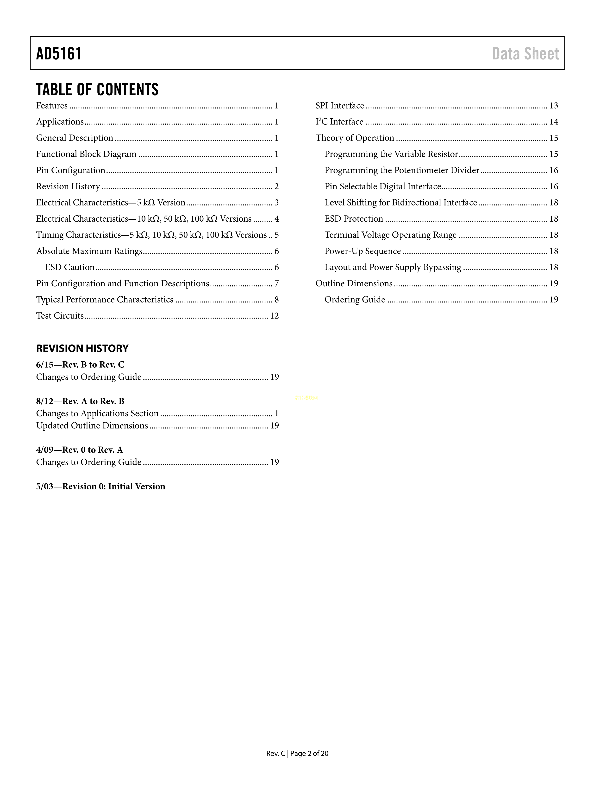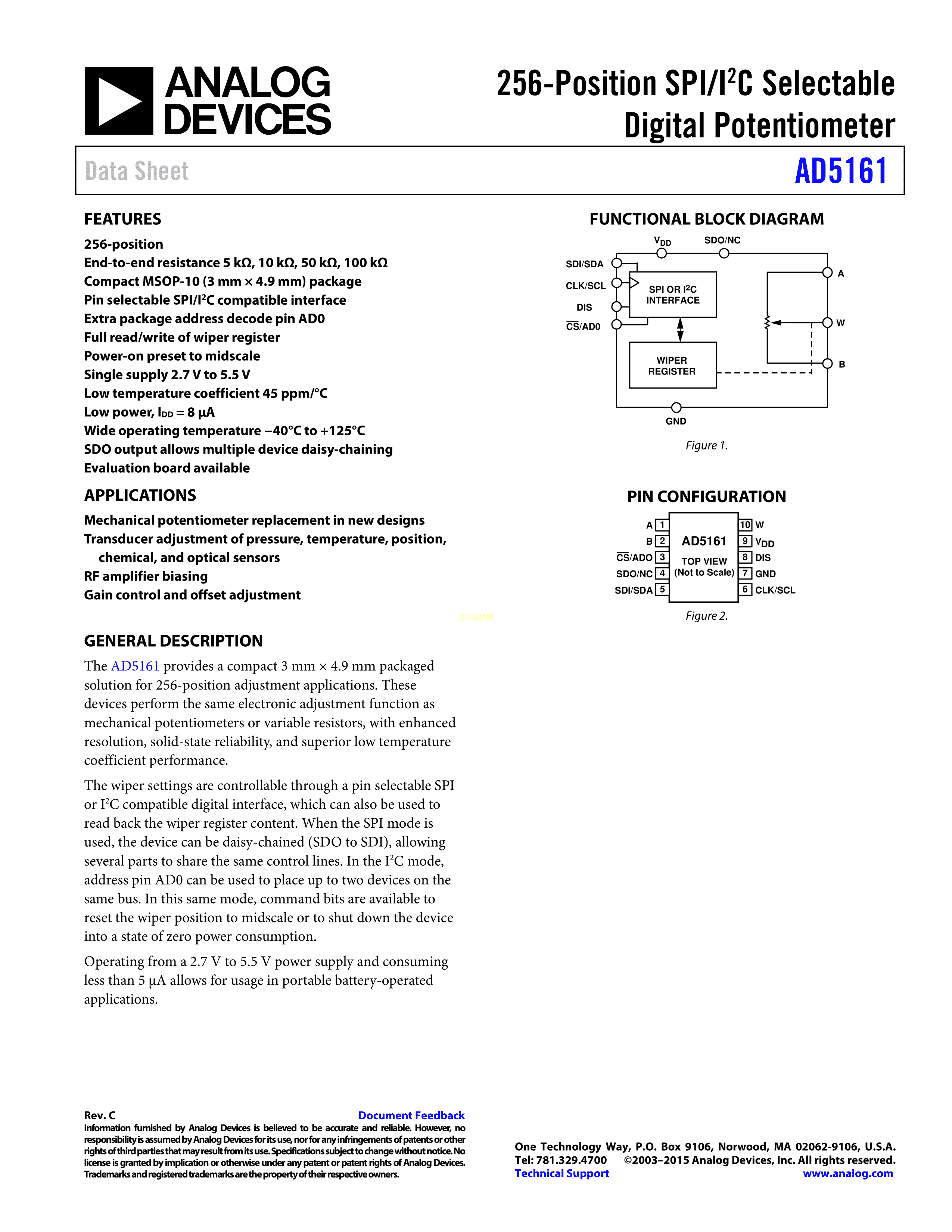 AD5161BRMZ50数据手册MSOP-10封装ADI(亚德诺)-LINEARPDF规格书,中英文