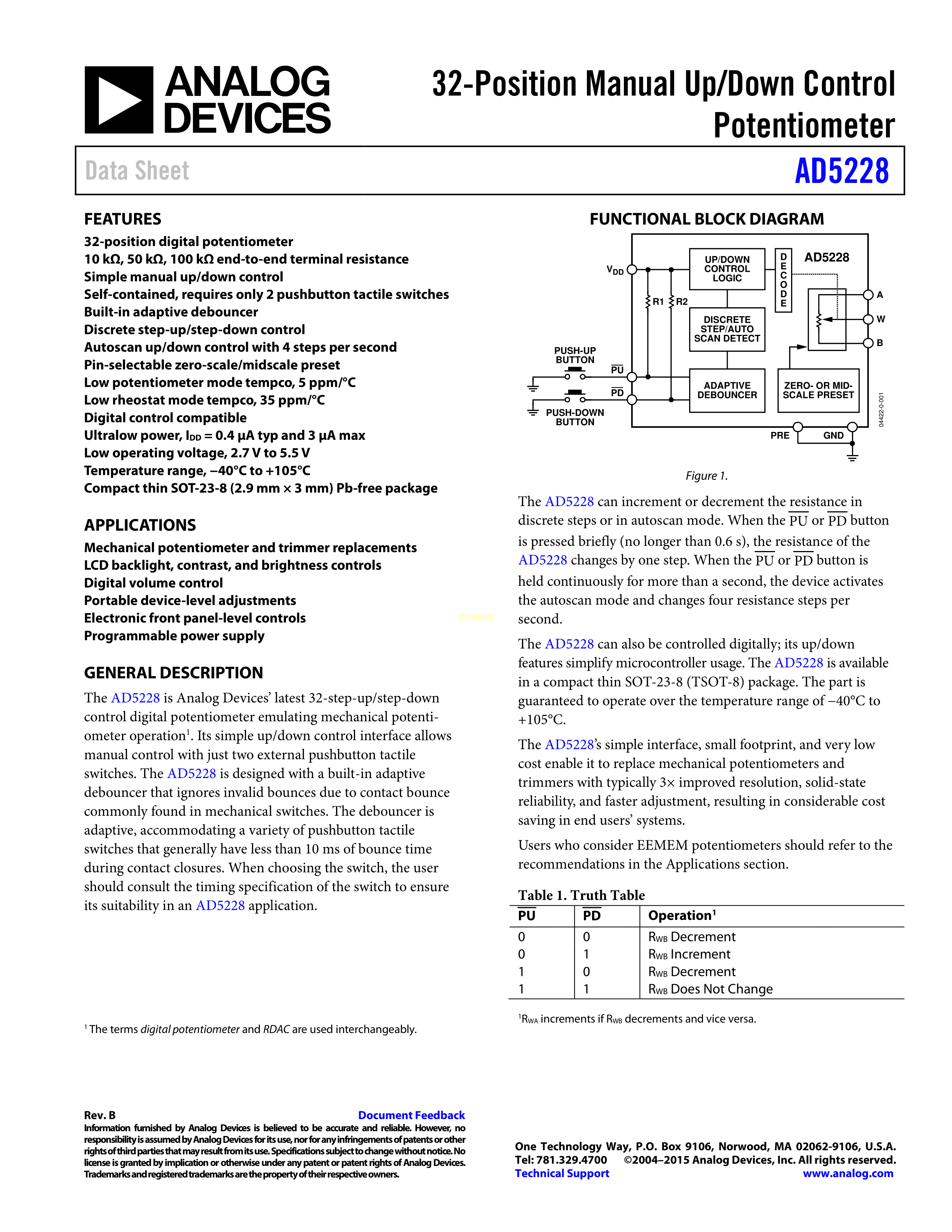 AD5228BUJZ10-RL7数据手册TSOT-8封装ADI(亚德诺)-LINEARPDF规格书,
