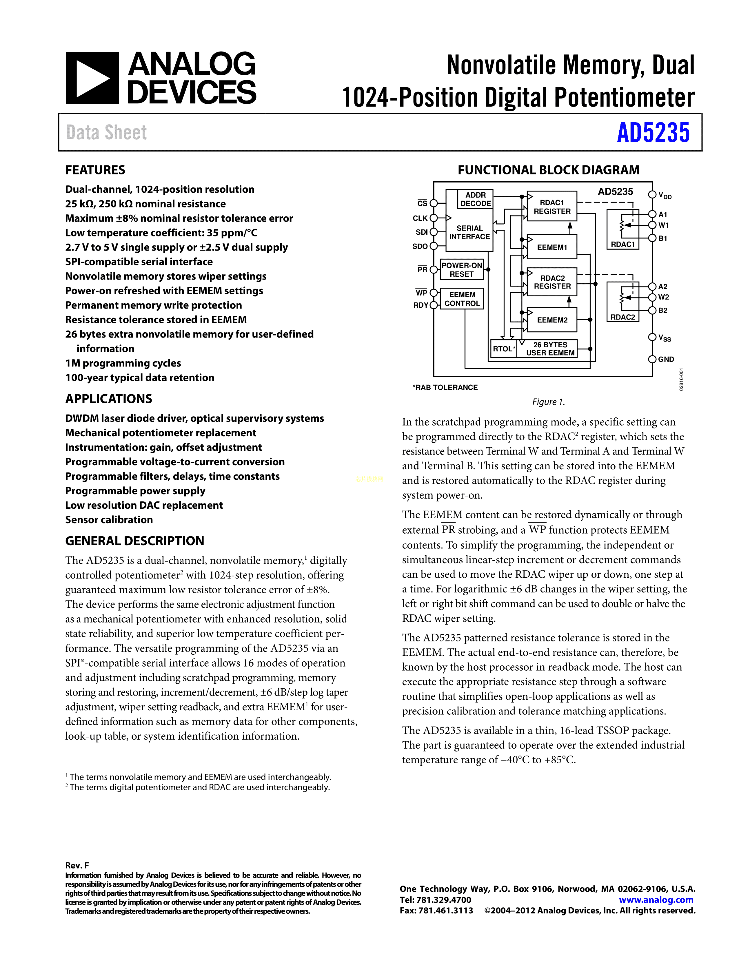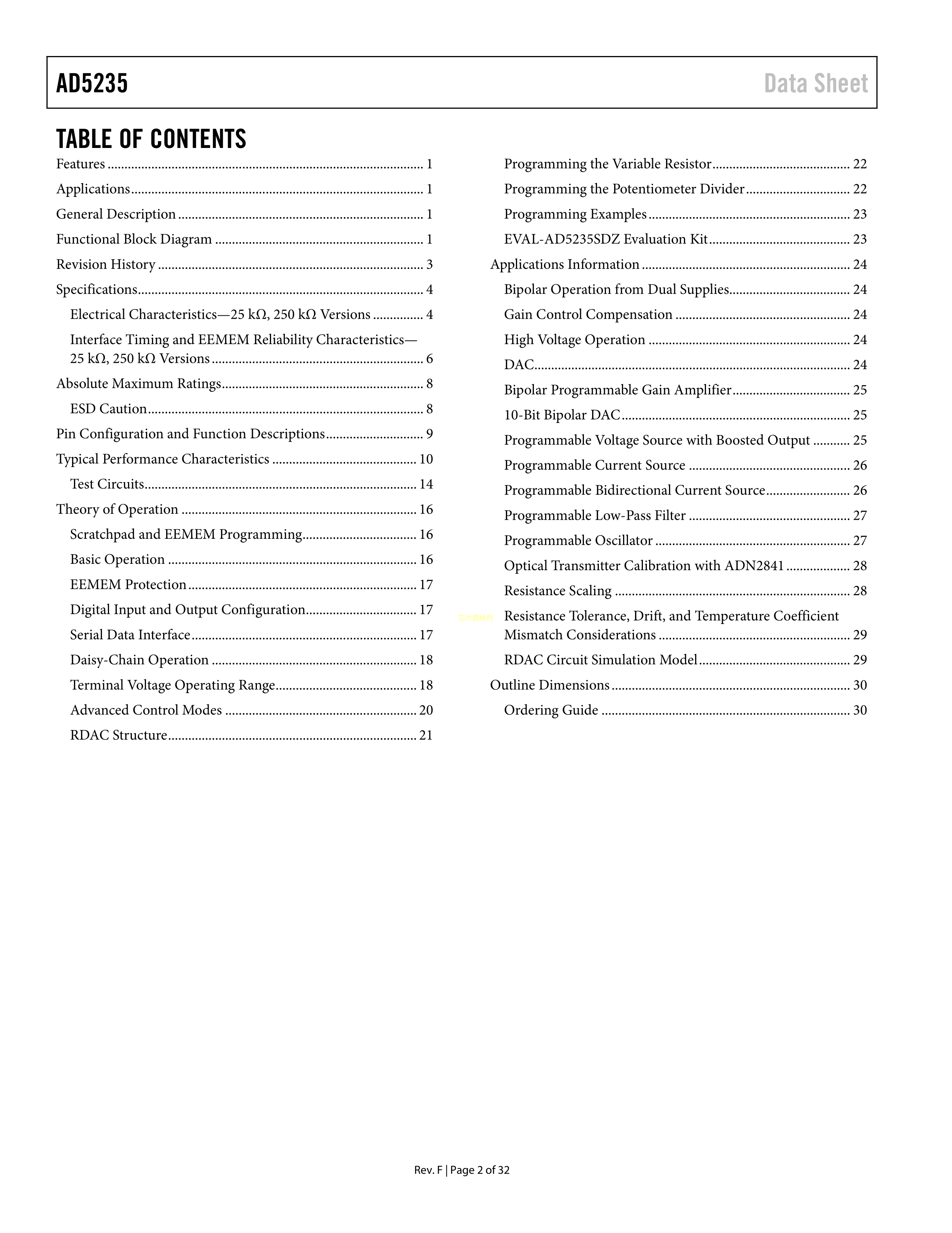 AD5235BRUZ250数据手册TSSOP-16封装ADI(亚德诺)-LINEARPDF规格书,中