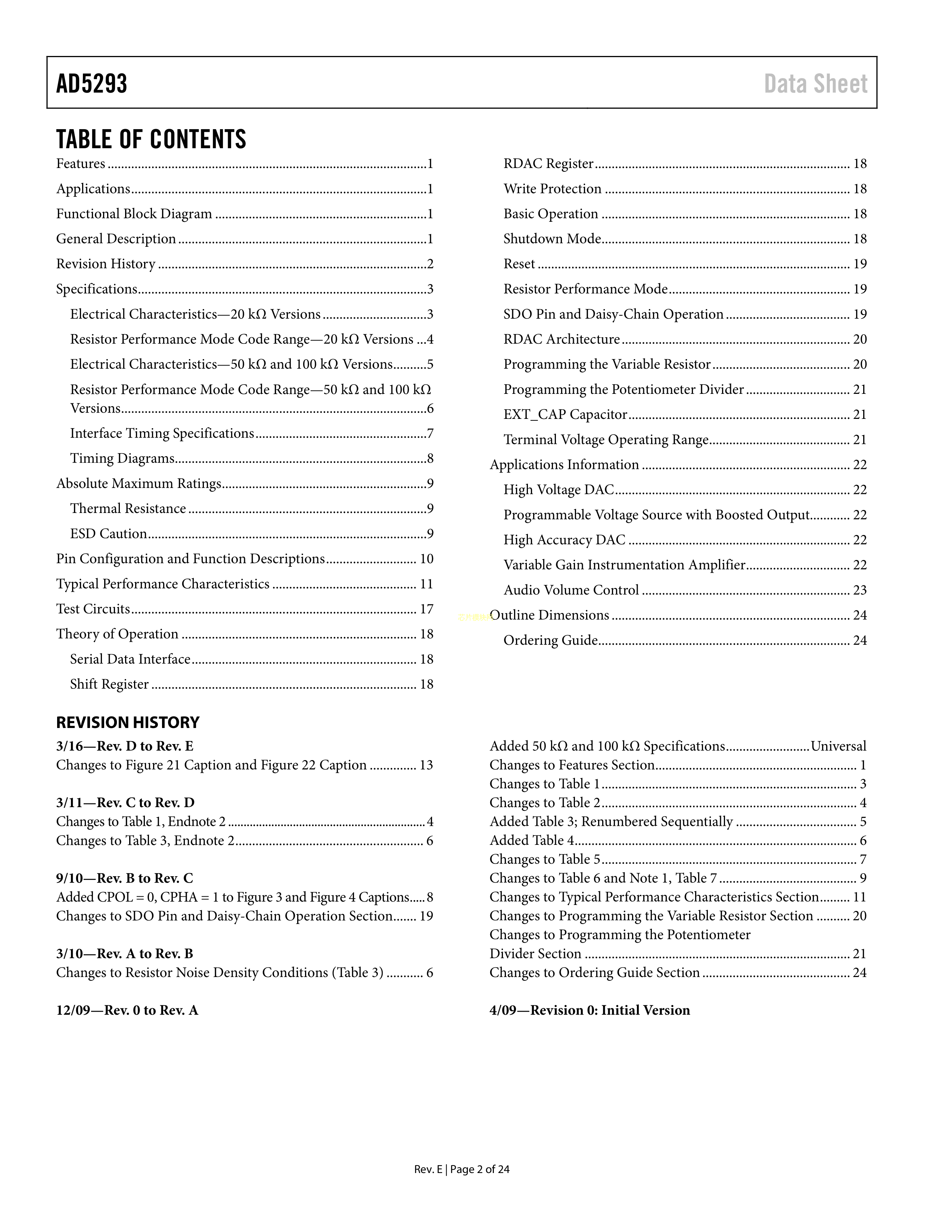 AD5293BRUZ-50数据手册TSSOP-14封装ADI(亚德诺)-LINEARPDF规格书,中