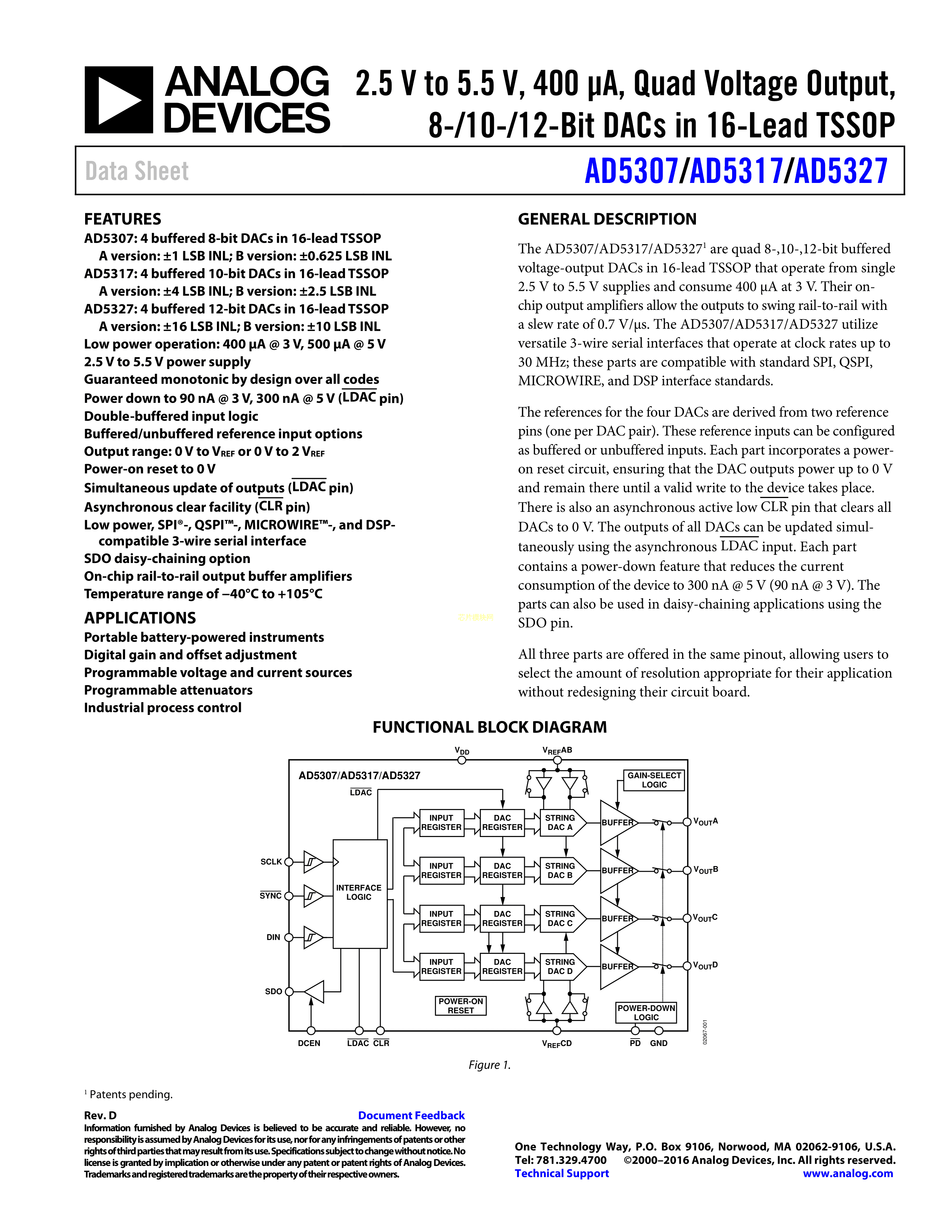 AD5317ARUZ-REEL7数据手册TSSOP-16封装ADI(亚德诺)-LINEARPDF规格