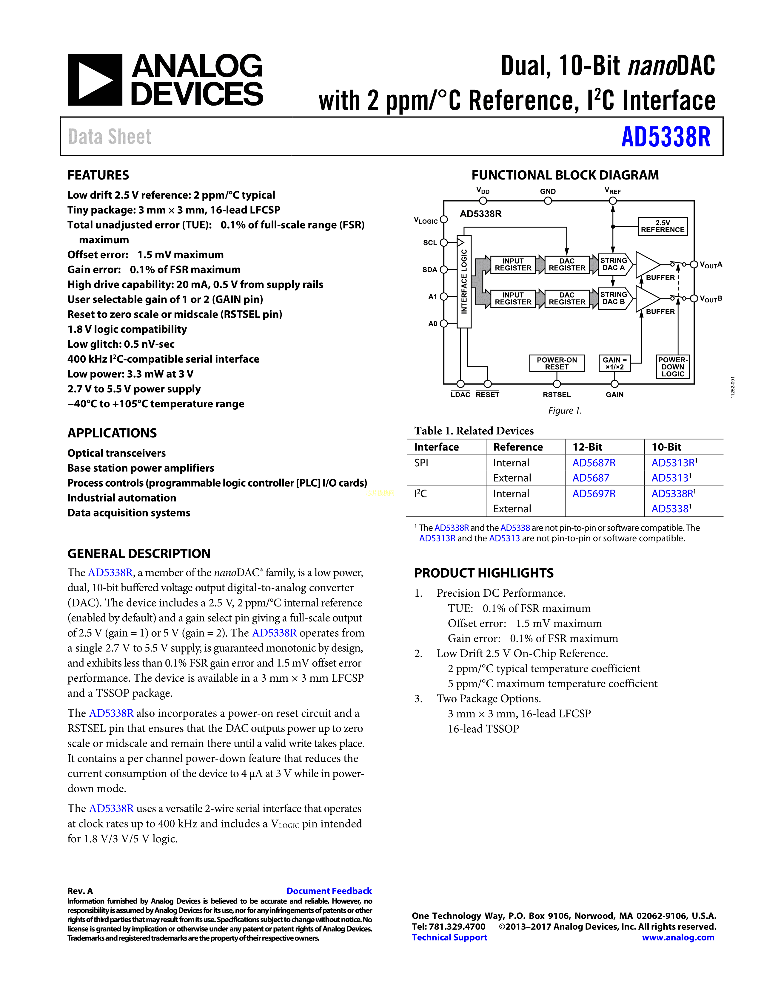 AD5338RBRUZ数据手册TSSOP-16封装ADI(亚德诺)-LINEARPDF规格书,中英文