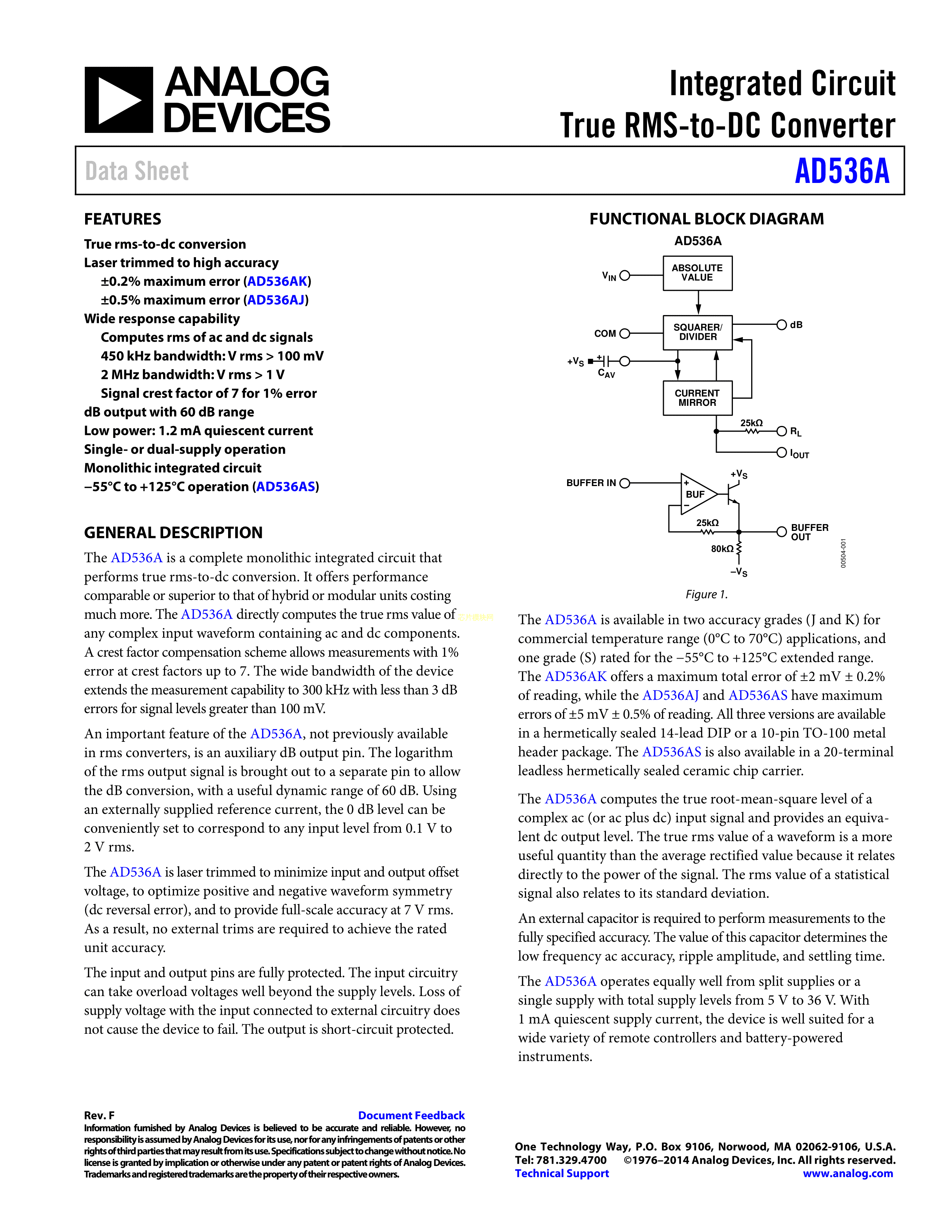 AD536AJHZ数据手册TO-100封装ADI(亚德诺)-LINEARPDF规格书,中英文下载