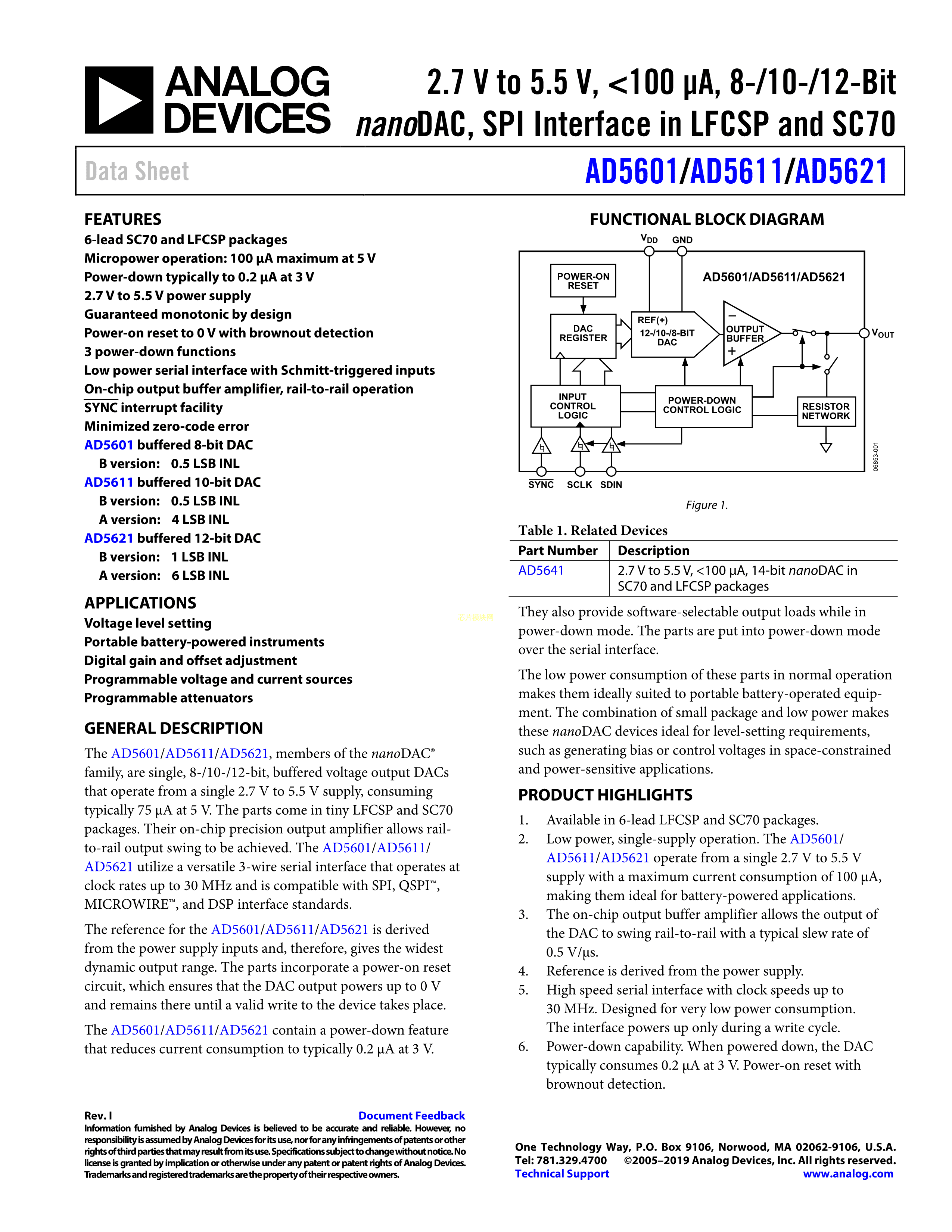 AD5621ACPZ-RL7数据手册LFCSP-6封装ADI(亚德诺)-LINEARPDF规格书,中