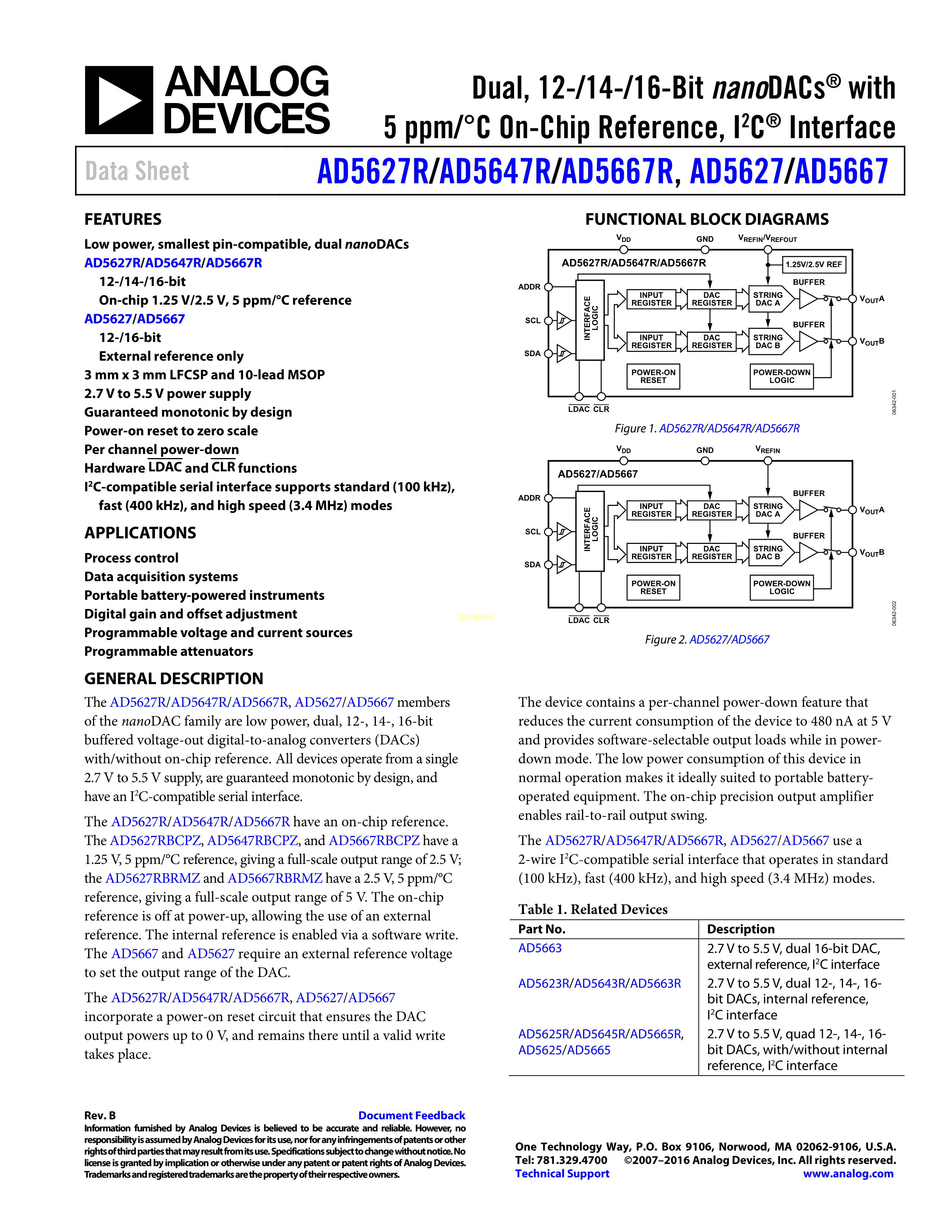 AD5627RBRMZ-2REEL7数据手册MSOP-10封装ADI(亚德诺)-LINEARPDF规