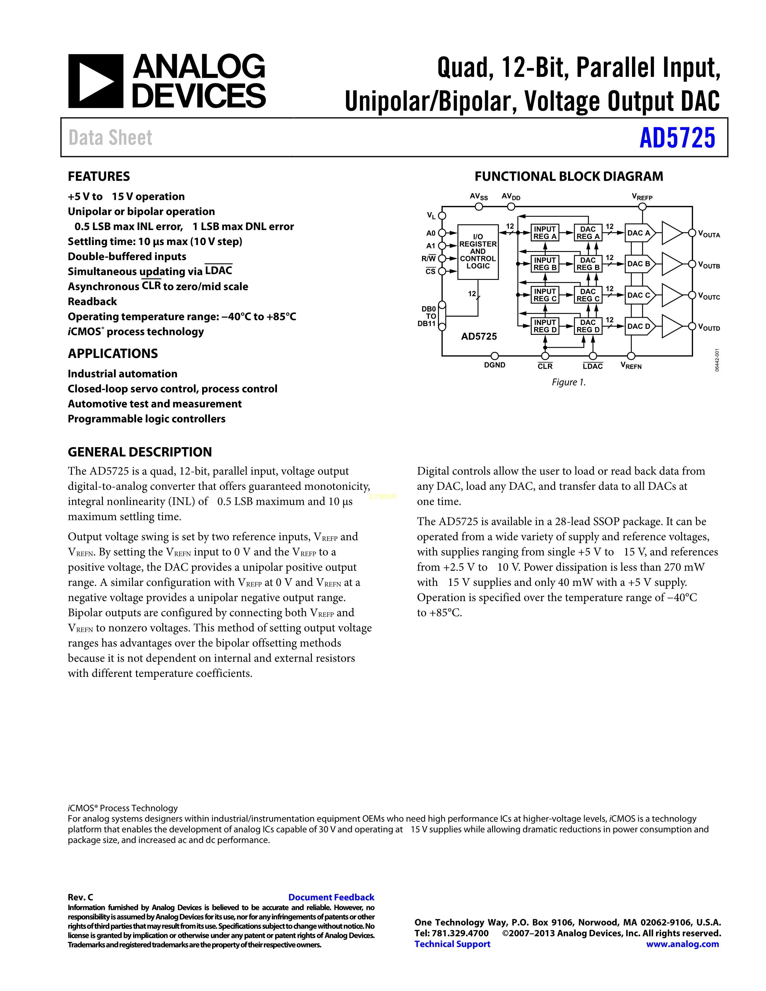 AD5725BRSZ-1500RL7数据手册SSOP-28封装ADI(亚德诺)-LINEARPDF规