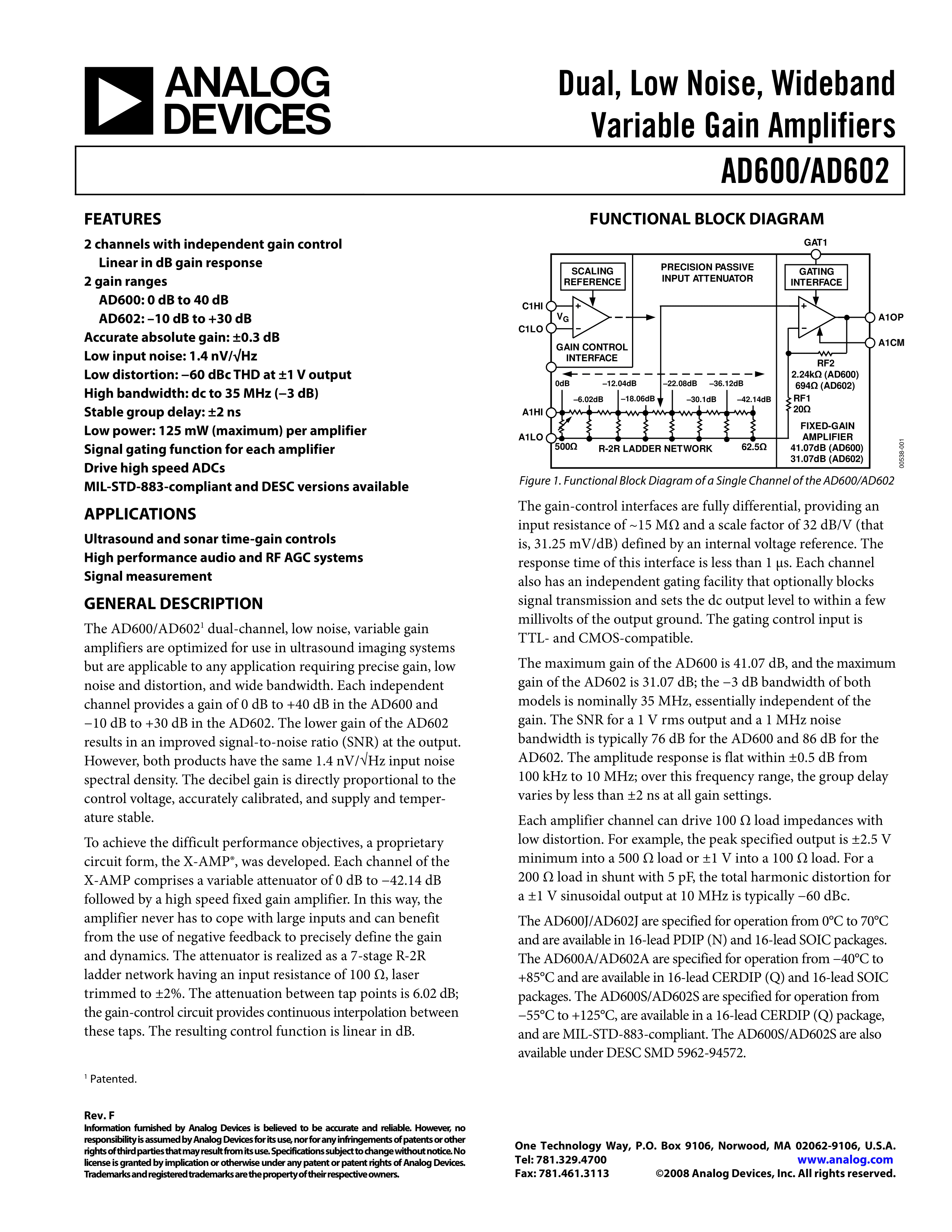 AD600JRZ数据手册SOIC-16封装ADI(亚德诺)-LINEARPDF规格书,中英文下载