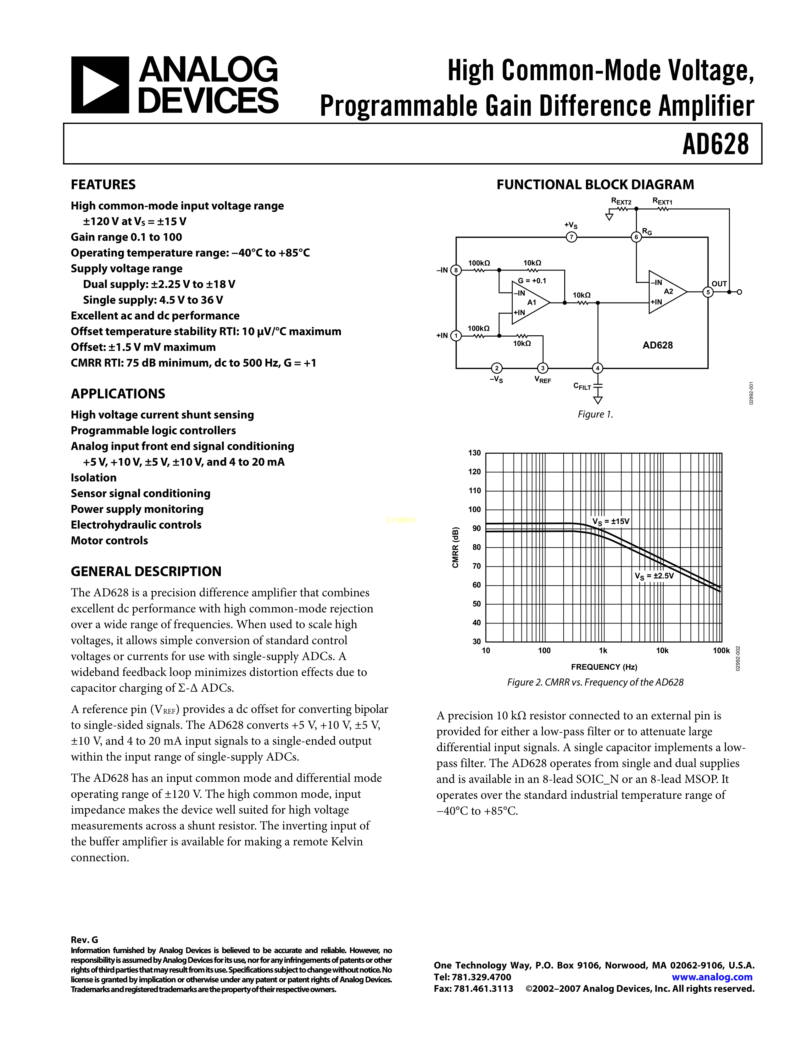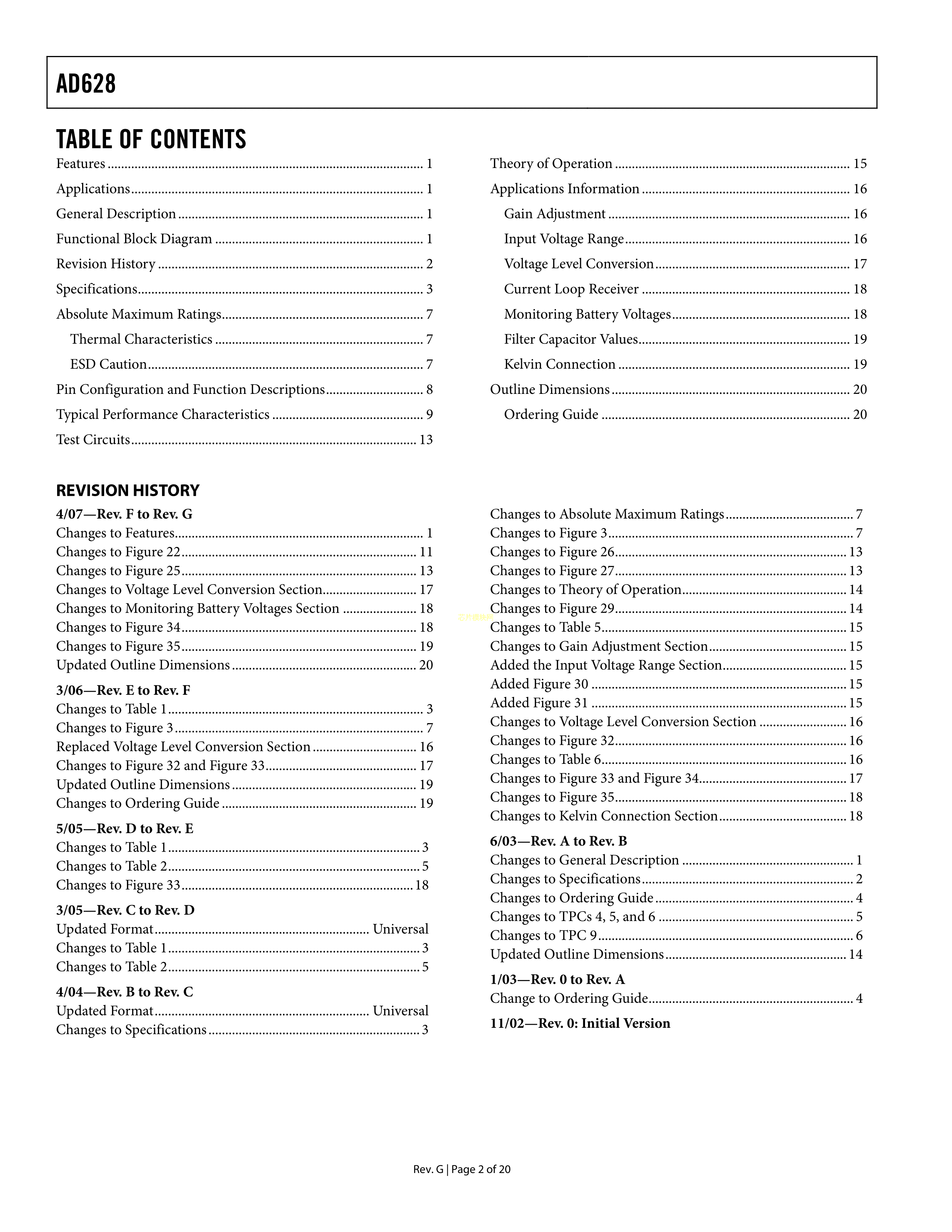 AD628ARZ-R7数据手册SOIC-8_150mil封装ADI(亚德诺)-LINEARPDF规格