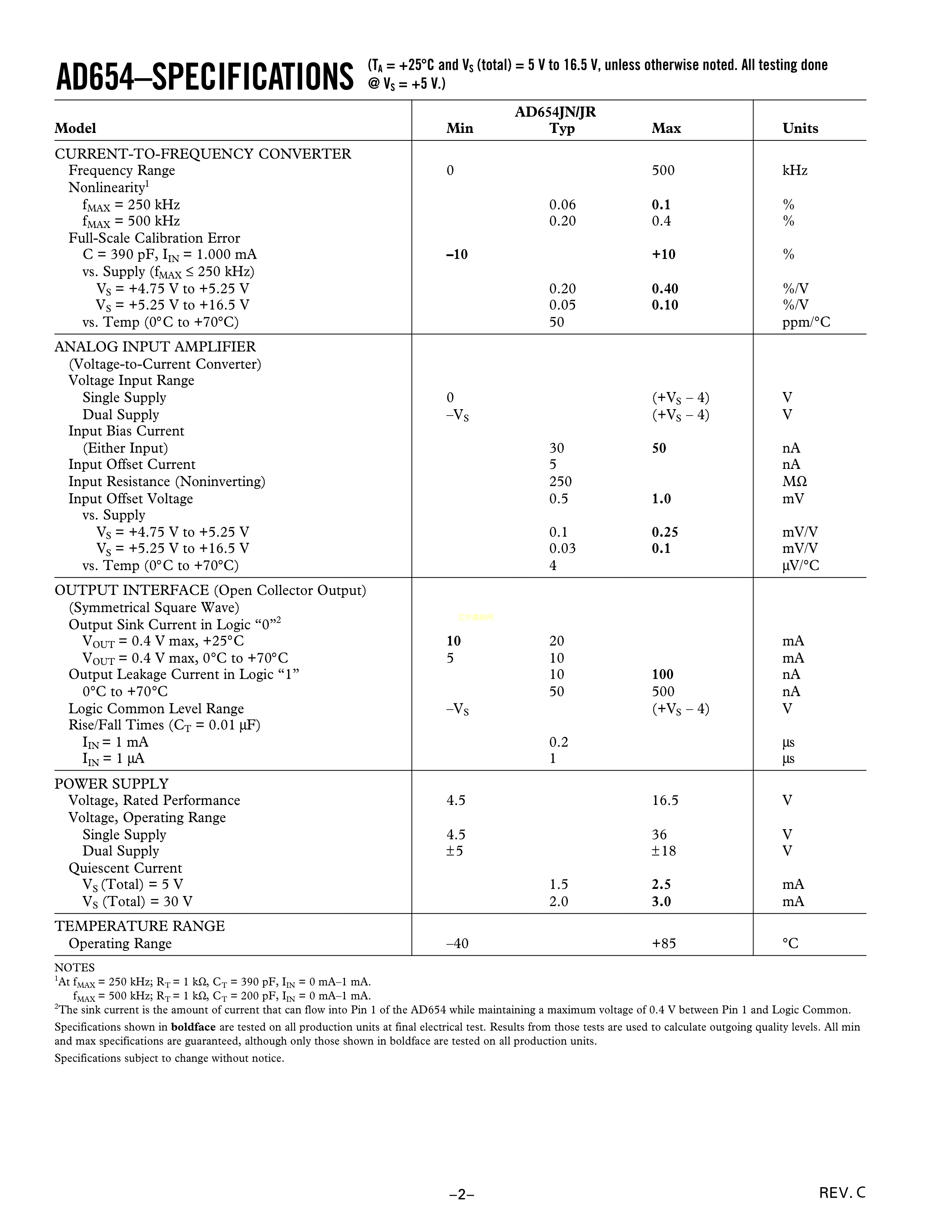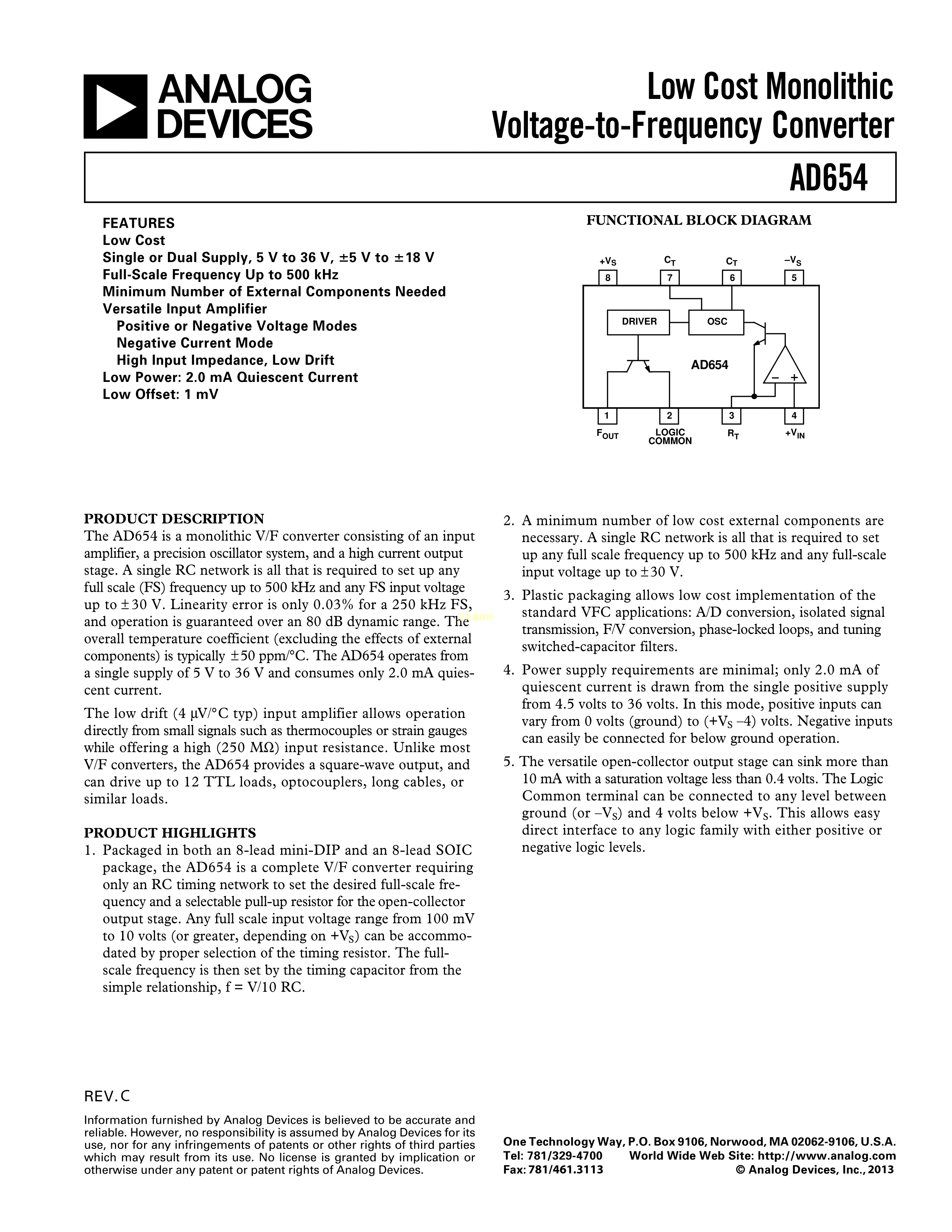 AD654JRZ数据手册SOIC-8封装ADI(亚德诺)-LINEARPDF规格书,中英文下载