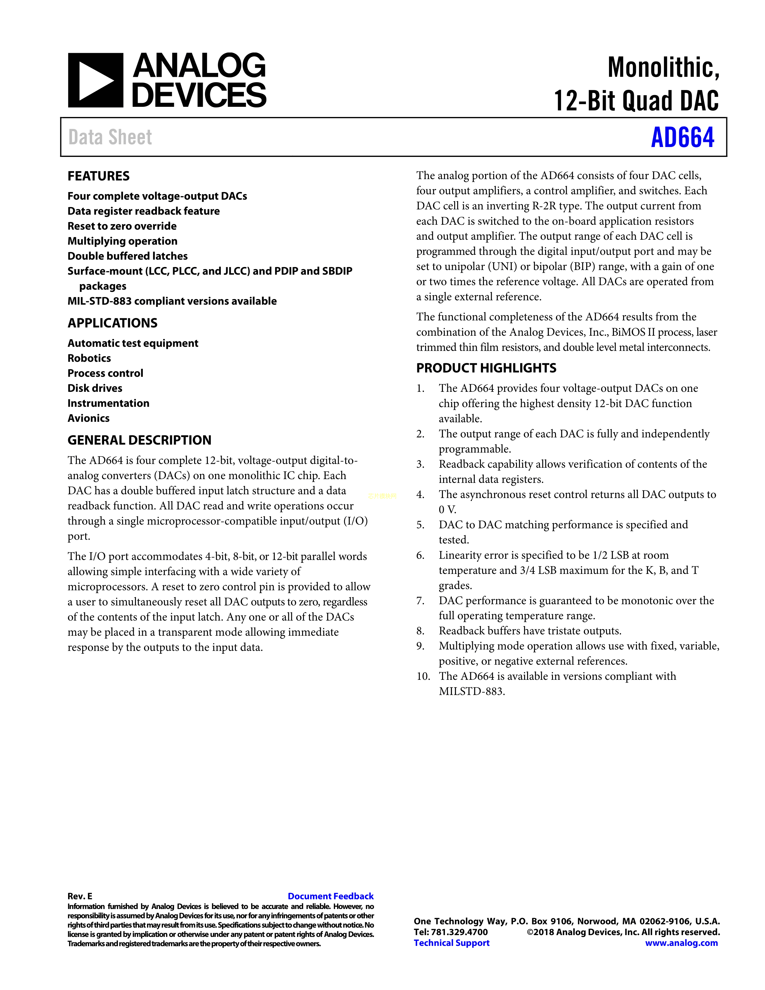 AD664AD-BIP数据手册CDIP-28SB封装ADI(亚德诺)-LINEARPDF规格书,中英
