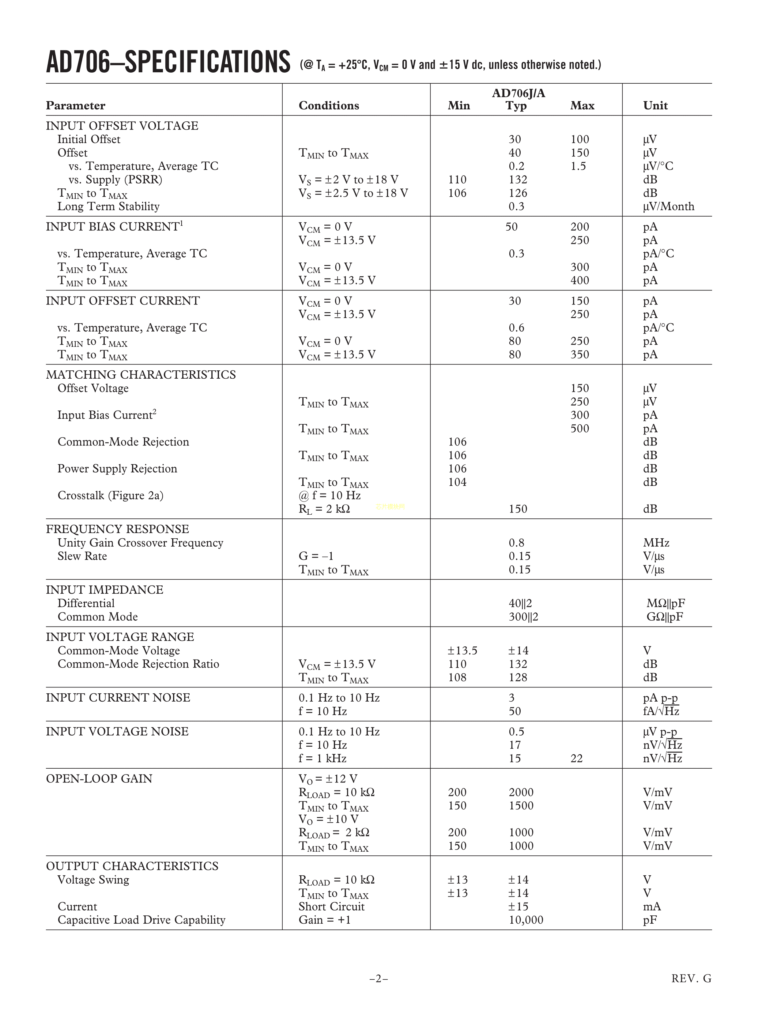 AD706JRZ数据手册SOIC-8封装ADI(亚德诺)-LINEARPDF规格书,中英文下载