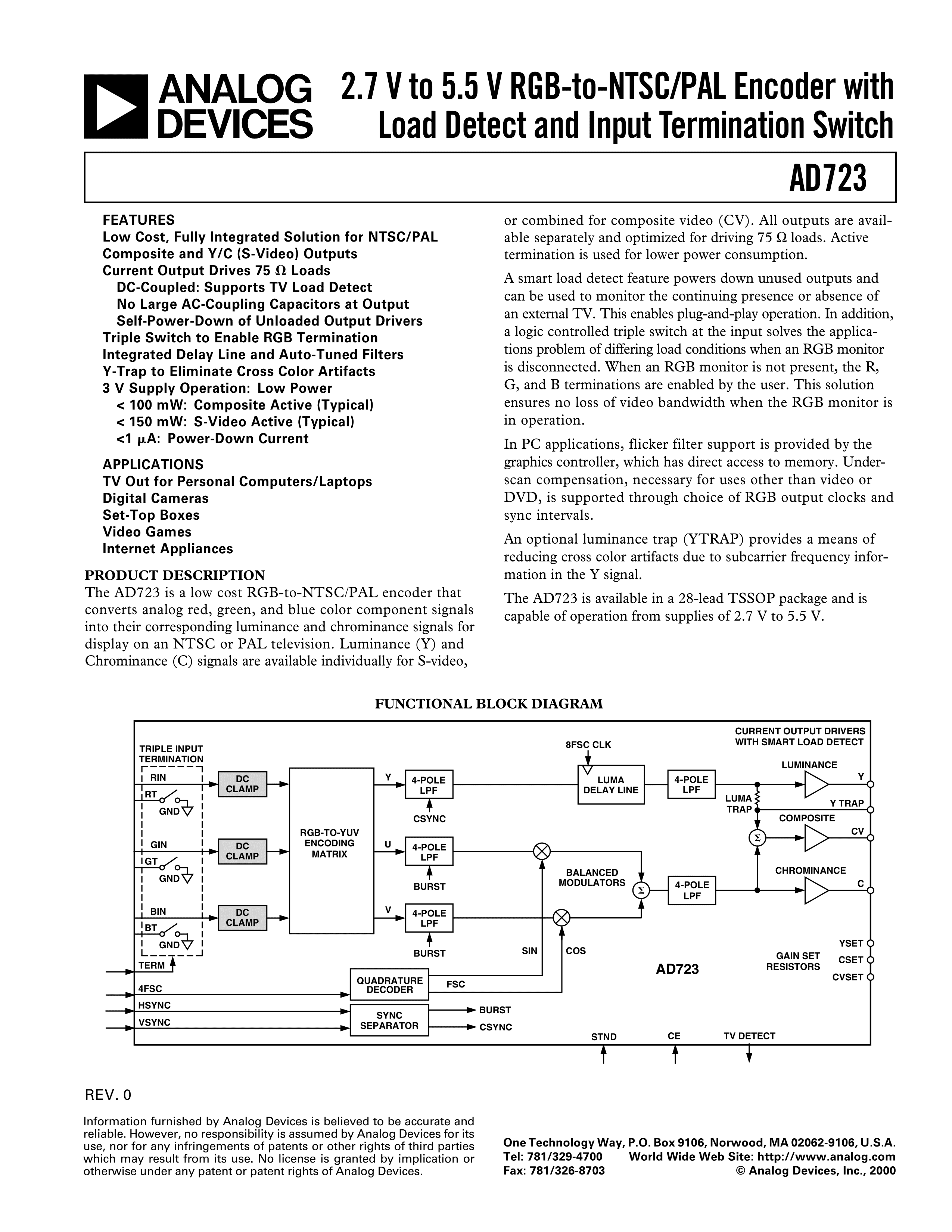 AD723ARUZ-REEL数据手册TSSOP-28封装ADI(亚德诺)-LINEARPDF规格书,