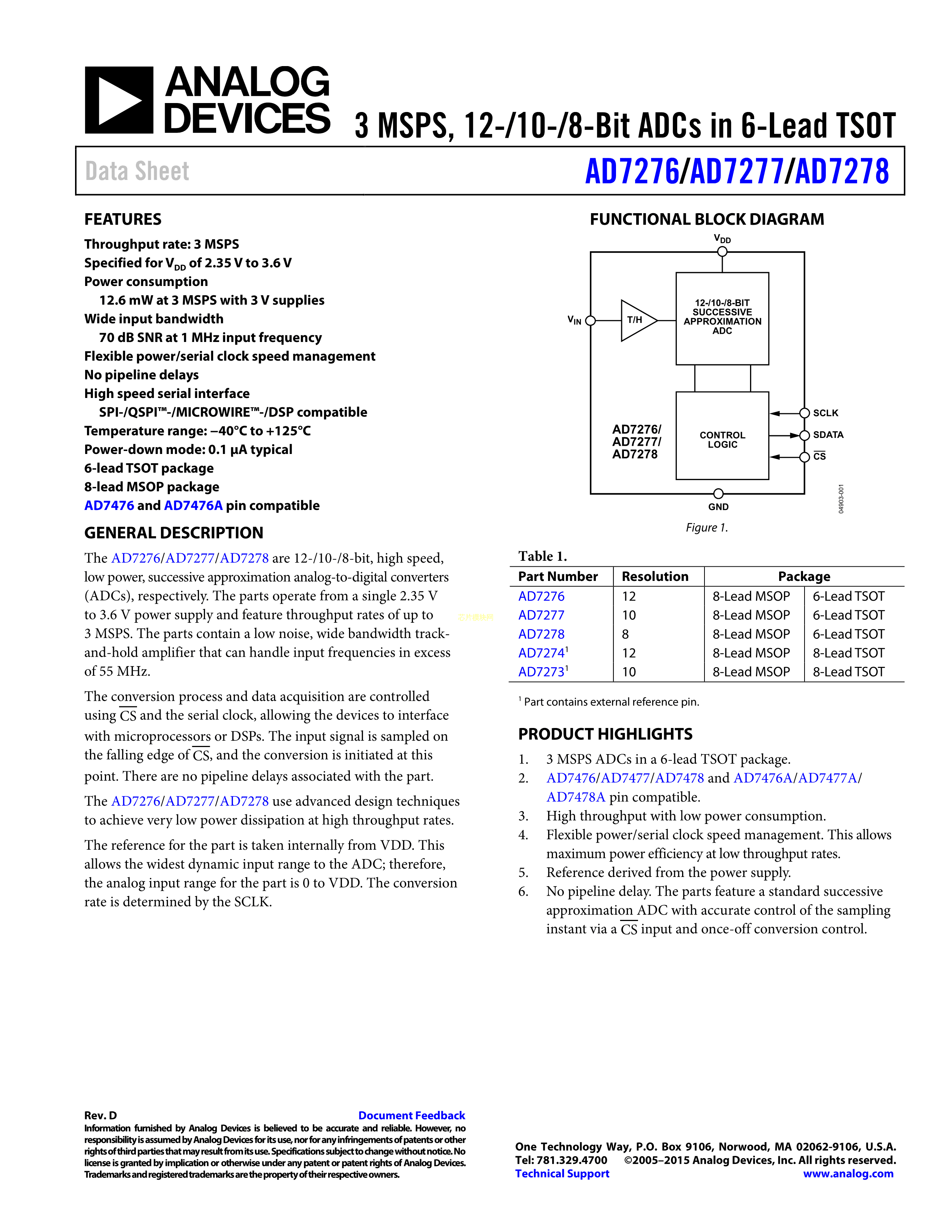 AD7276AUJZ-REEL7数据手册TSOT-23-6封装ADI(亚德诺)-LINEARPDF规
