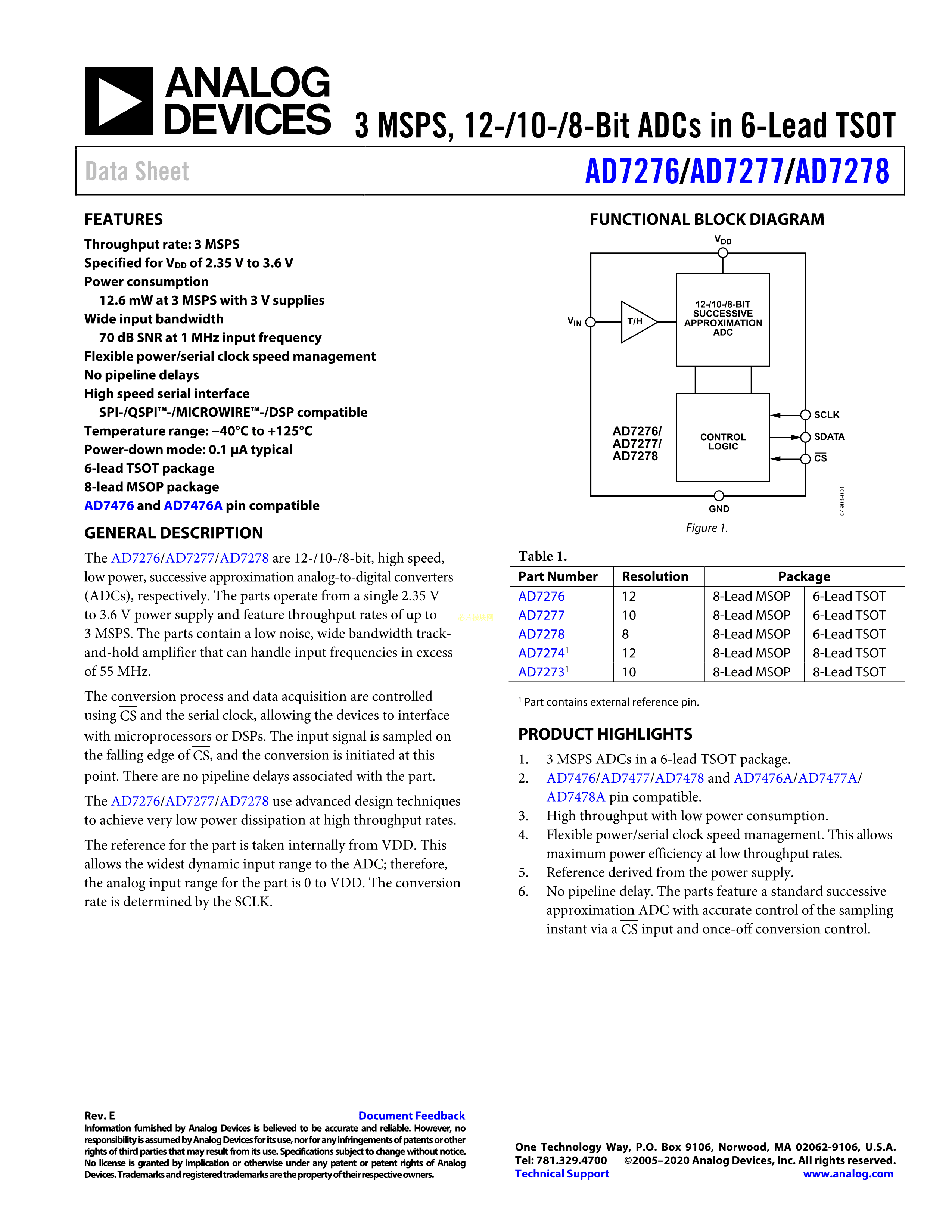 AD7277ARMZ数据手册MSOP-8封装ADI(亚德诺)-LINEARPDF规格书,中英文下载