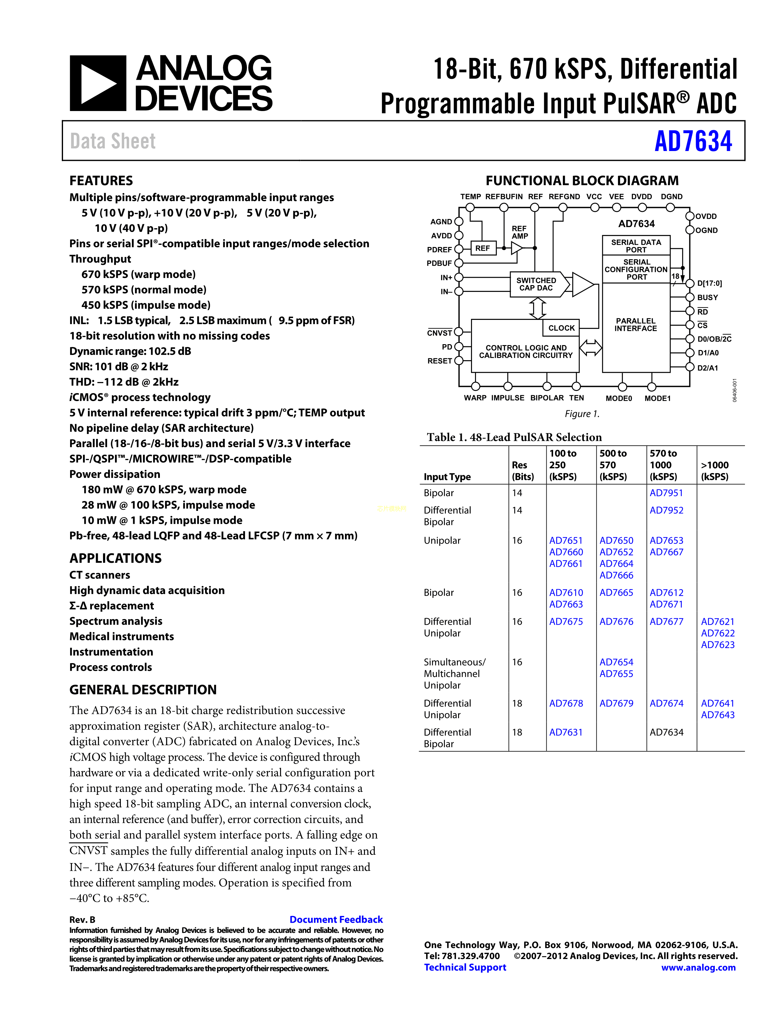 AD7634BCPZ数据手册LFCSP-48封装ADI(亚德诺)-LINEARPDF规格书,中英文下
