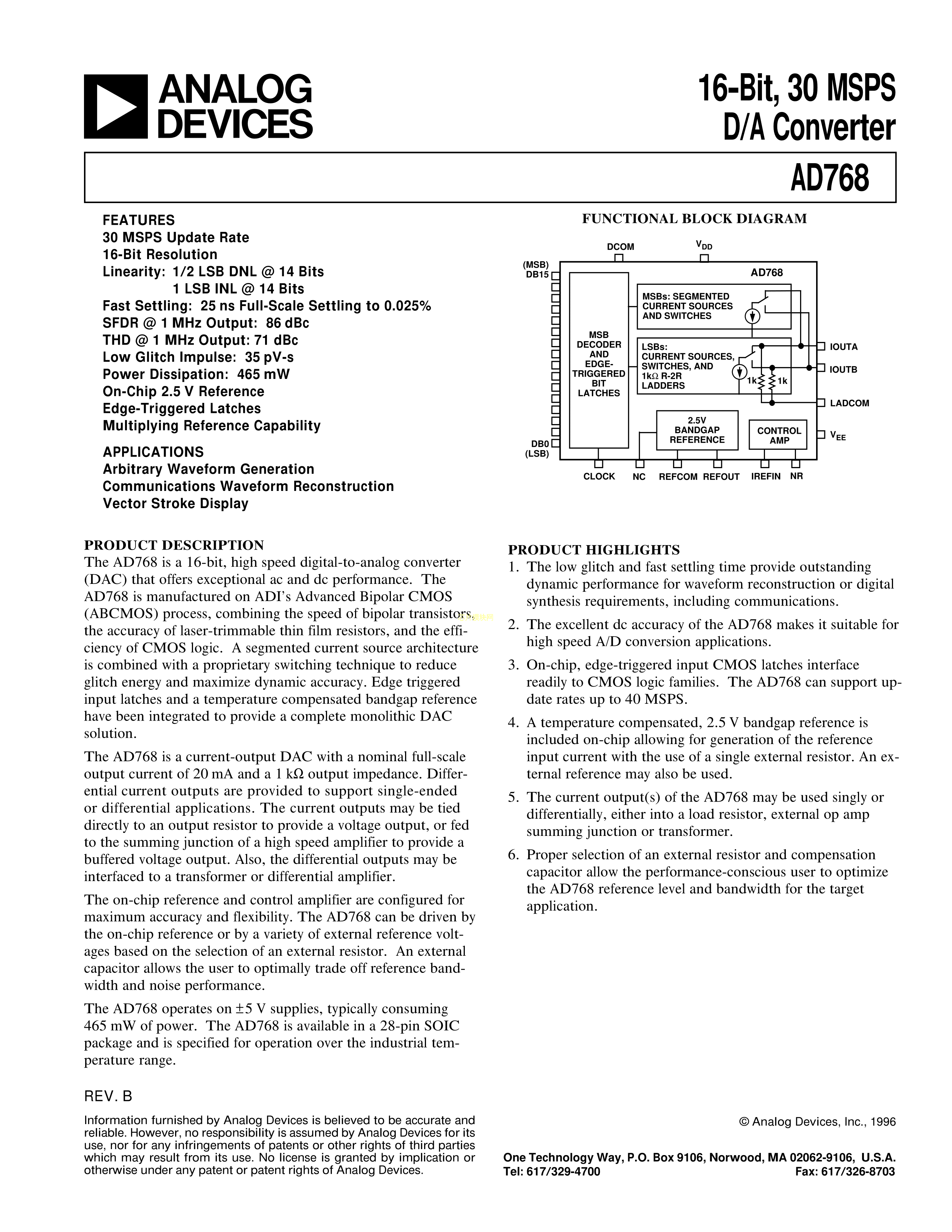 AD768ARZ-REEL数据手册SOIC-28封装ADI(亚德诺)-LINEARPDF规格书,中英