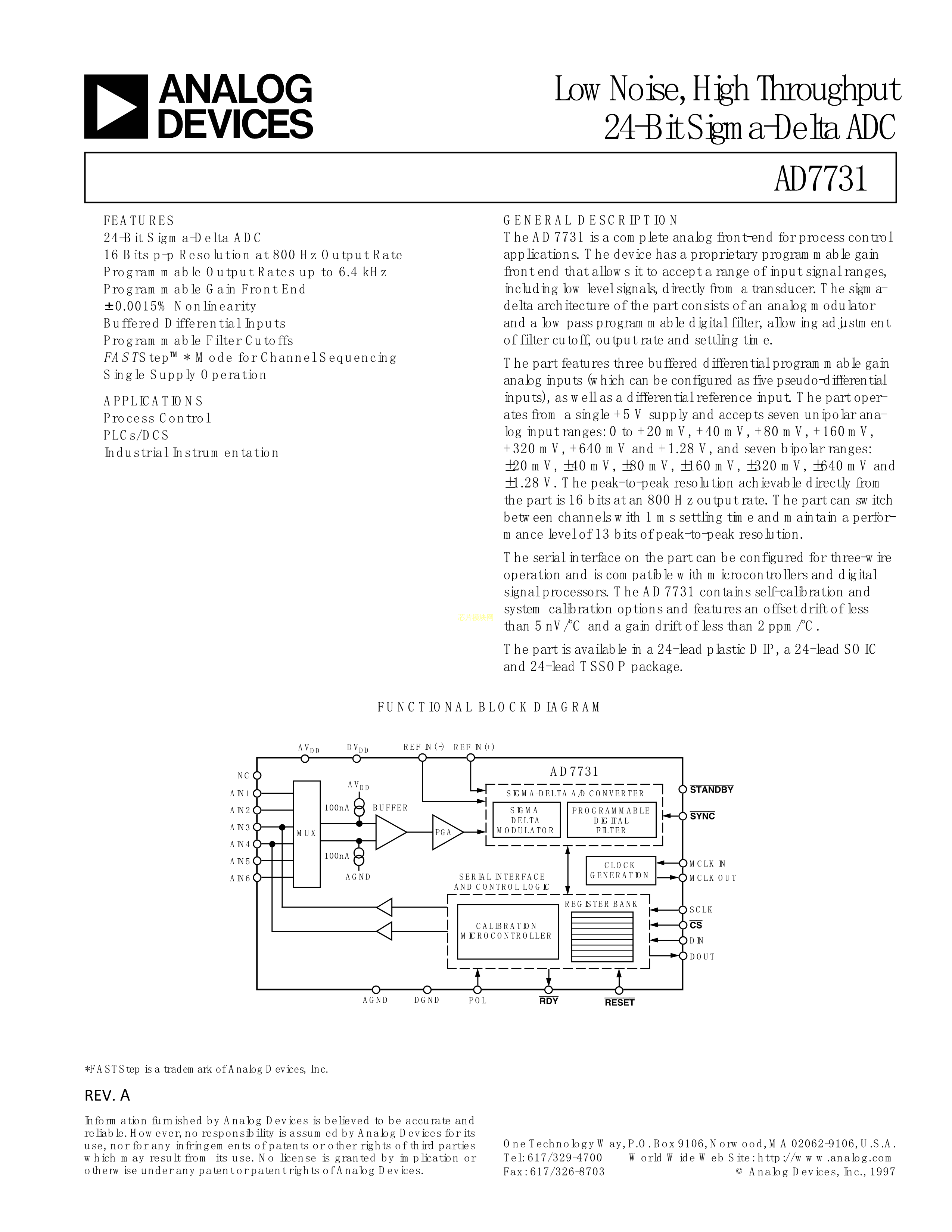 AD7731BNZ数据手册PDIP-24封装ADI(亚德诺)-LINEARPDF规格书,中英文下载
