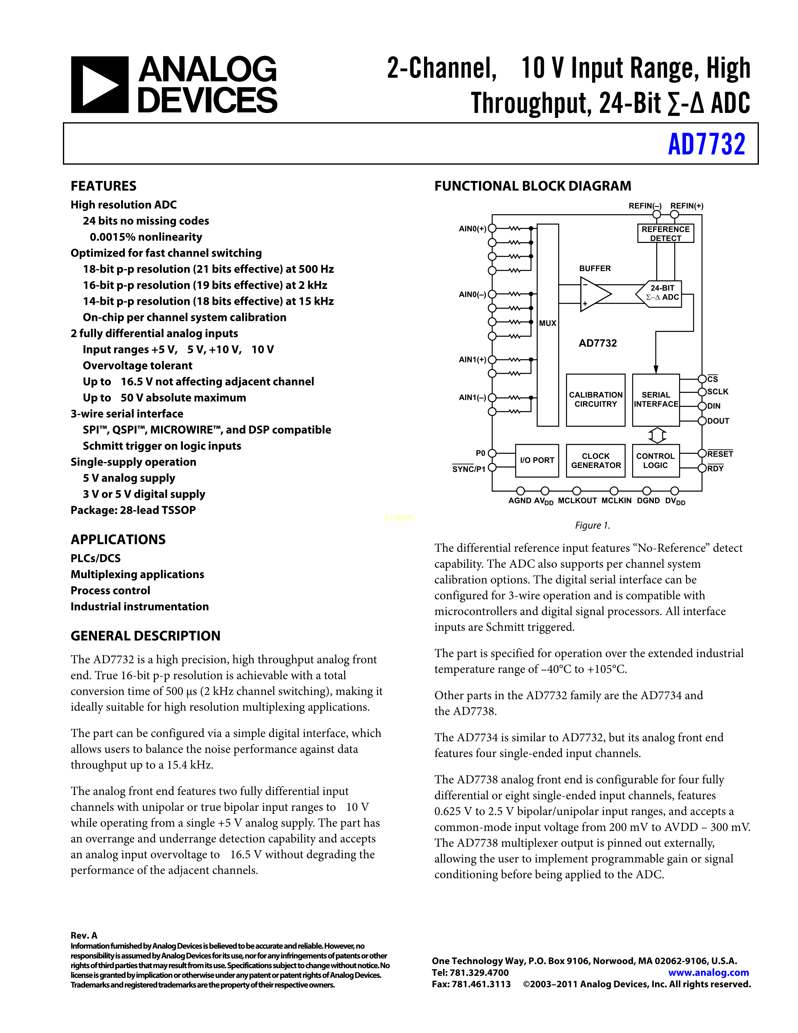 AD7732BRUZ数据手册TSSOP-28封装ADI(亚德诺)-LINEARPDF规格书,中英文下载