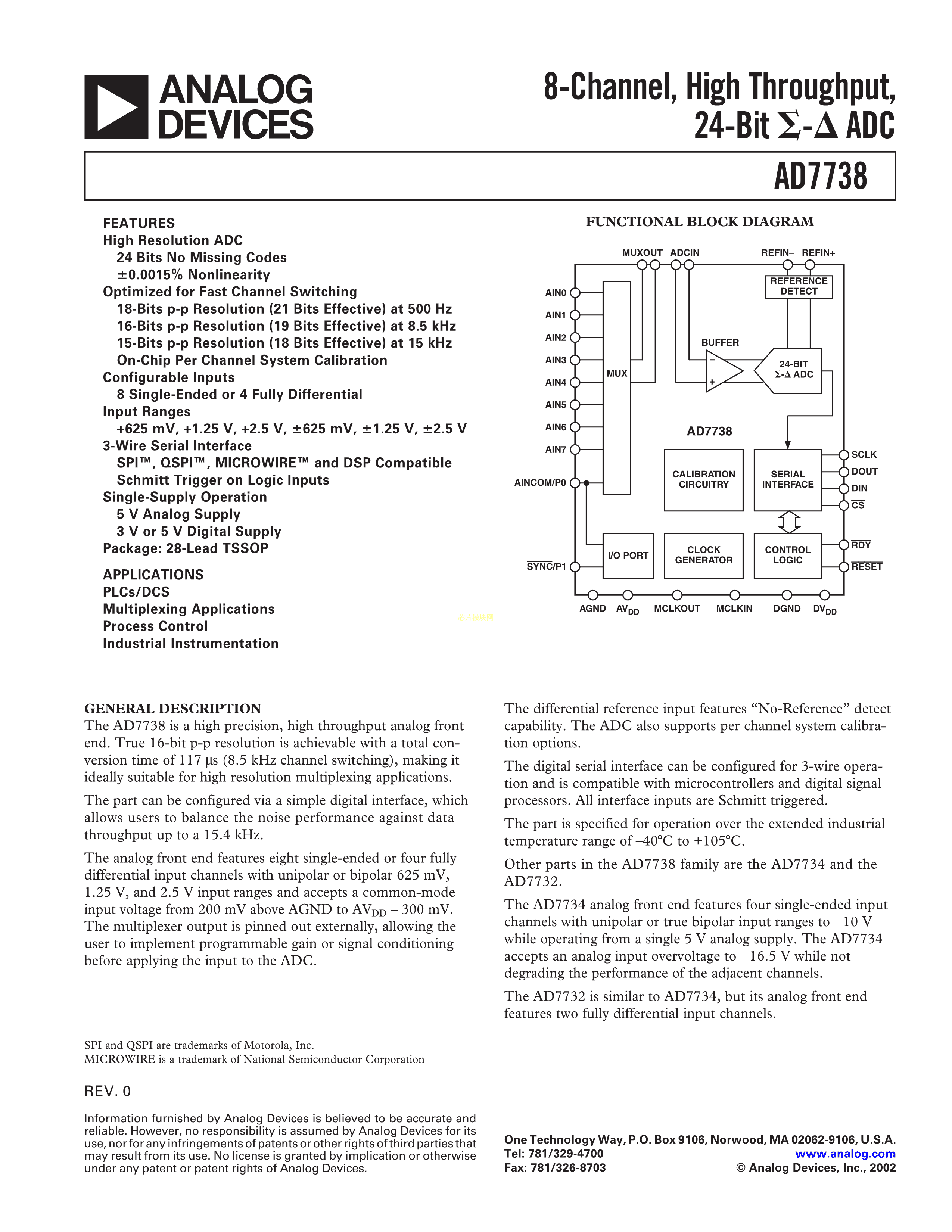 AD7738BRUZ-REEL7数据手册TSSOP-28封装ADI(亚德诺)-LINEARPDF规格书,中英文下载