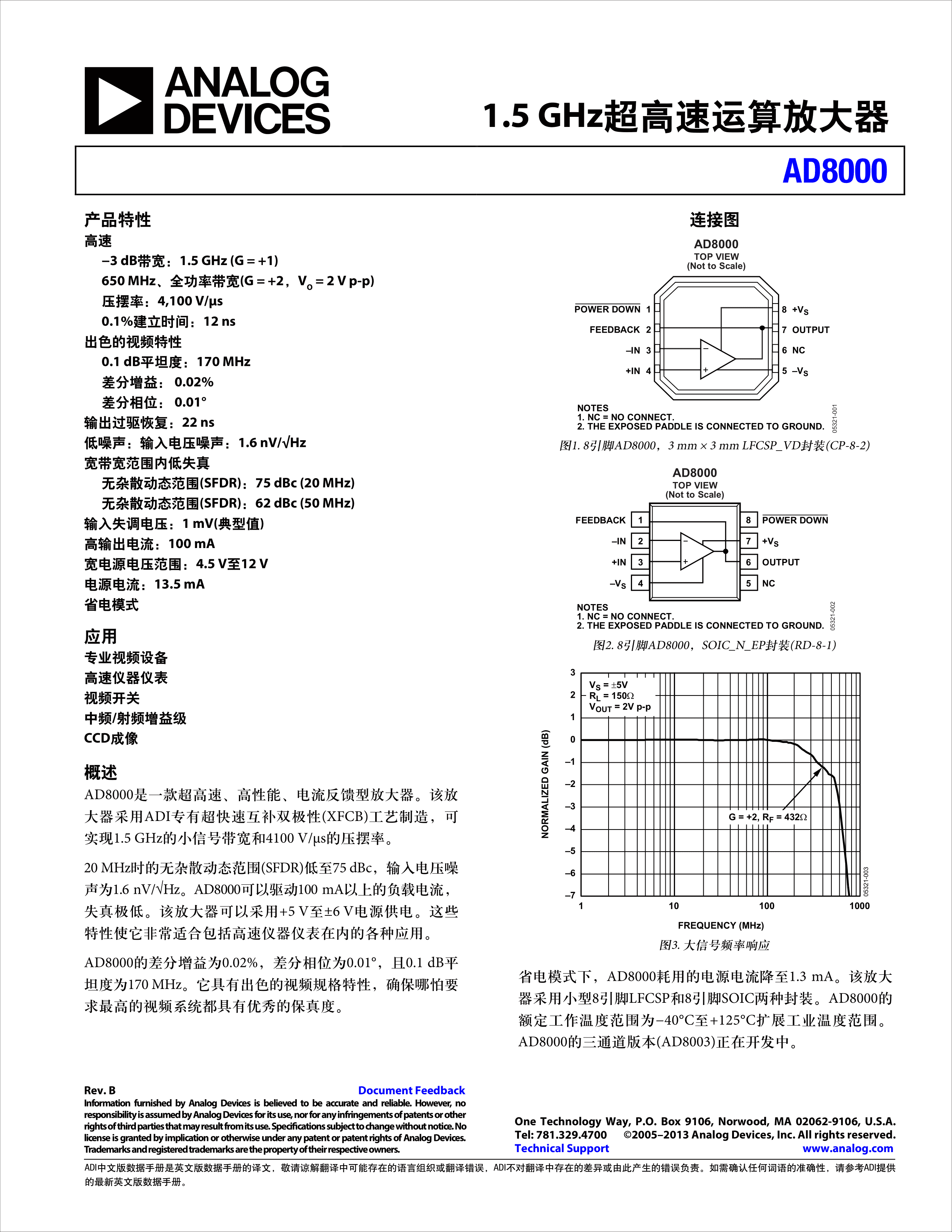 AD8000YCPZ-REEL数据手册LFCSP-8封装ADI(亚德诺)-LINEARPDF规格书,