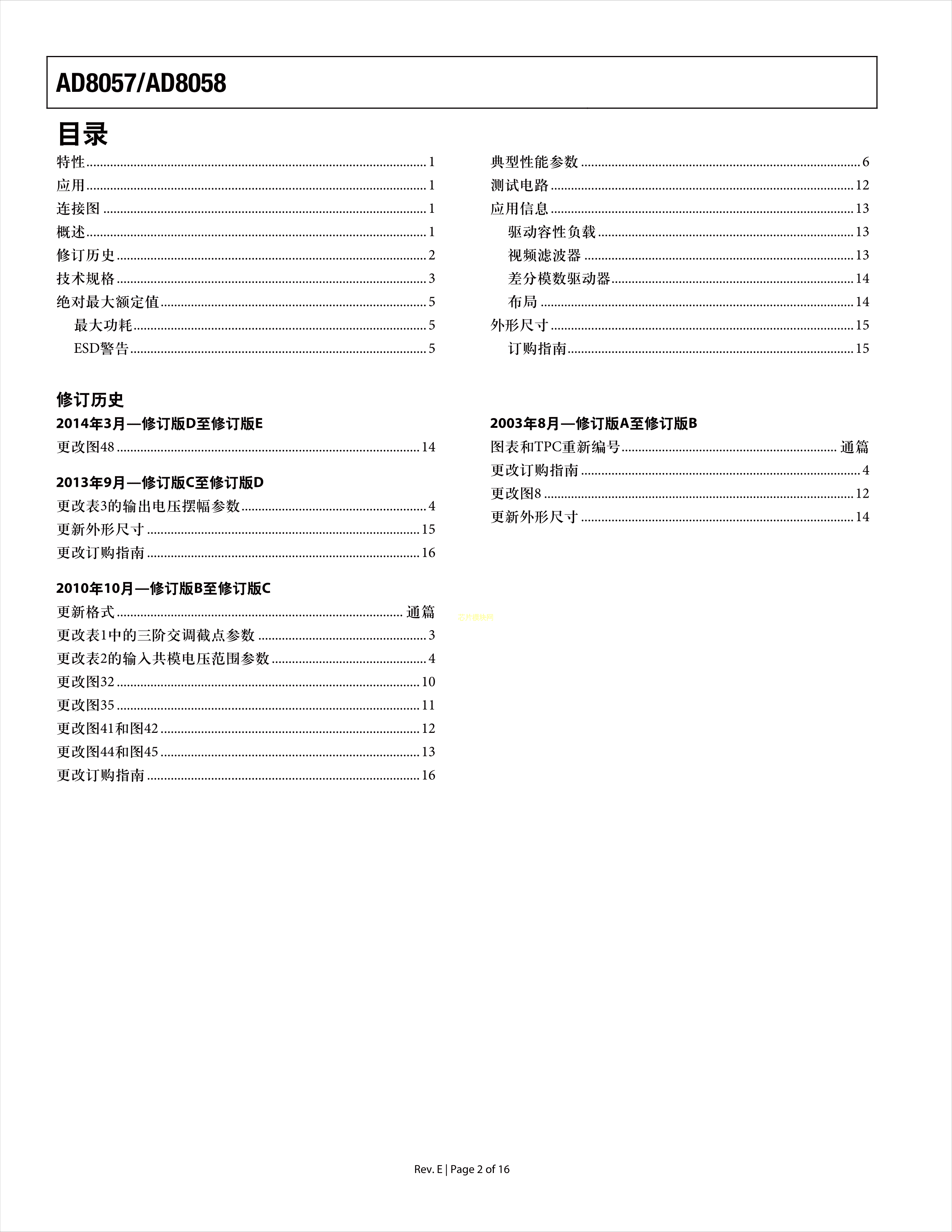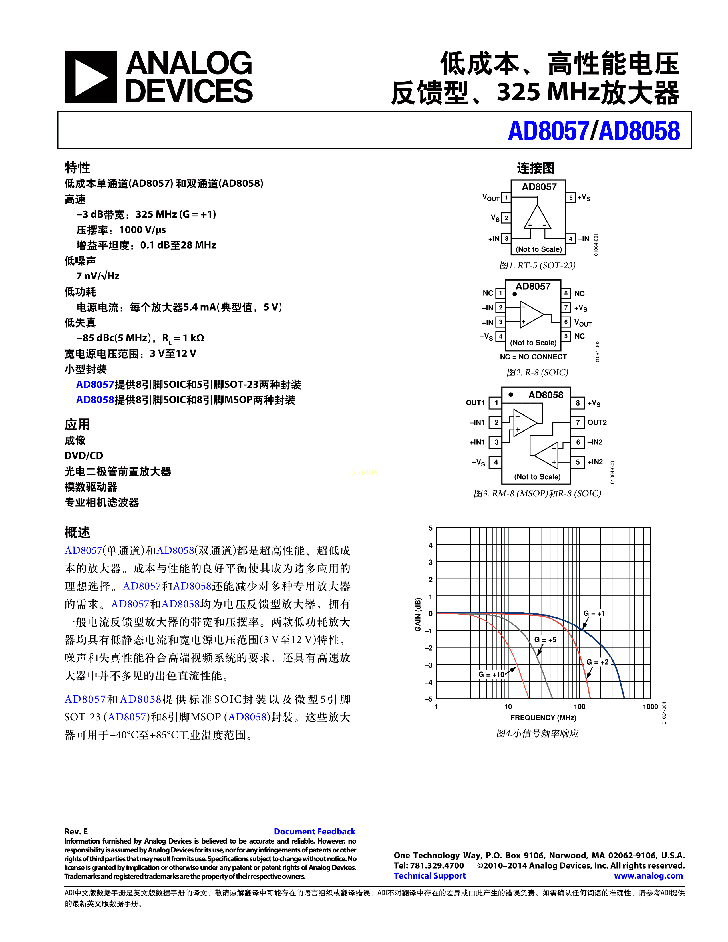 AD8058ARMZ数据手册MSOP-8封装ADI(亚德诺)-LINEARPDF规格书,中英文下载