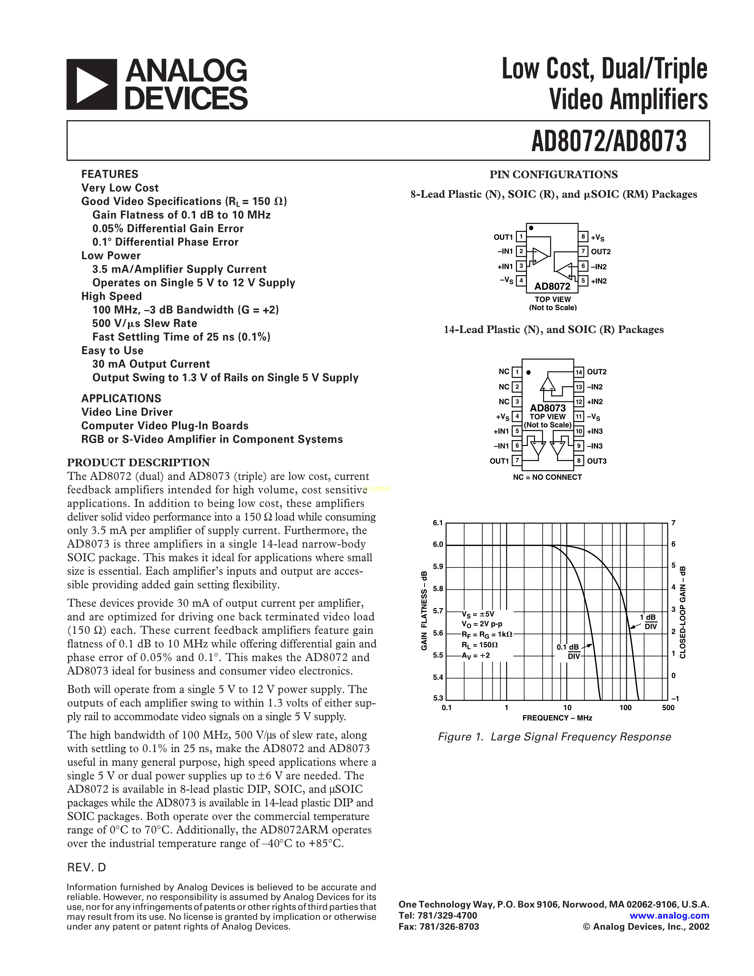 AD8072ARMZ数据手册MSOP-8封装ADI(亚德诺)-LINEARPDF规格书,中英文下载