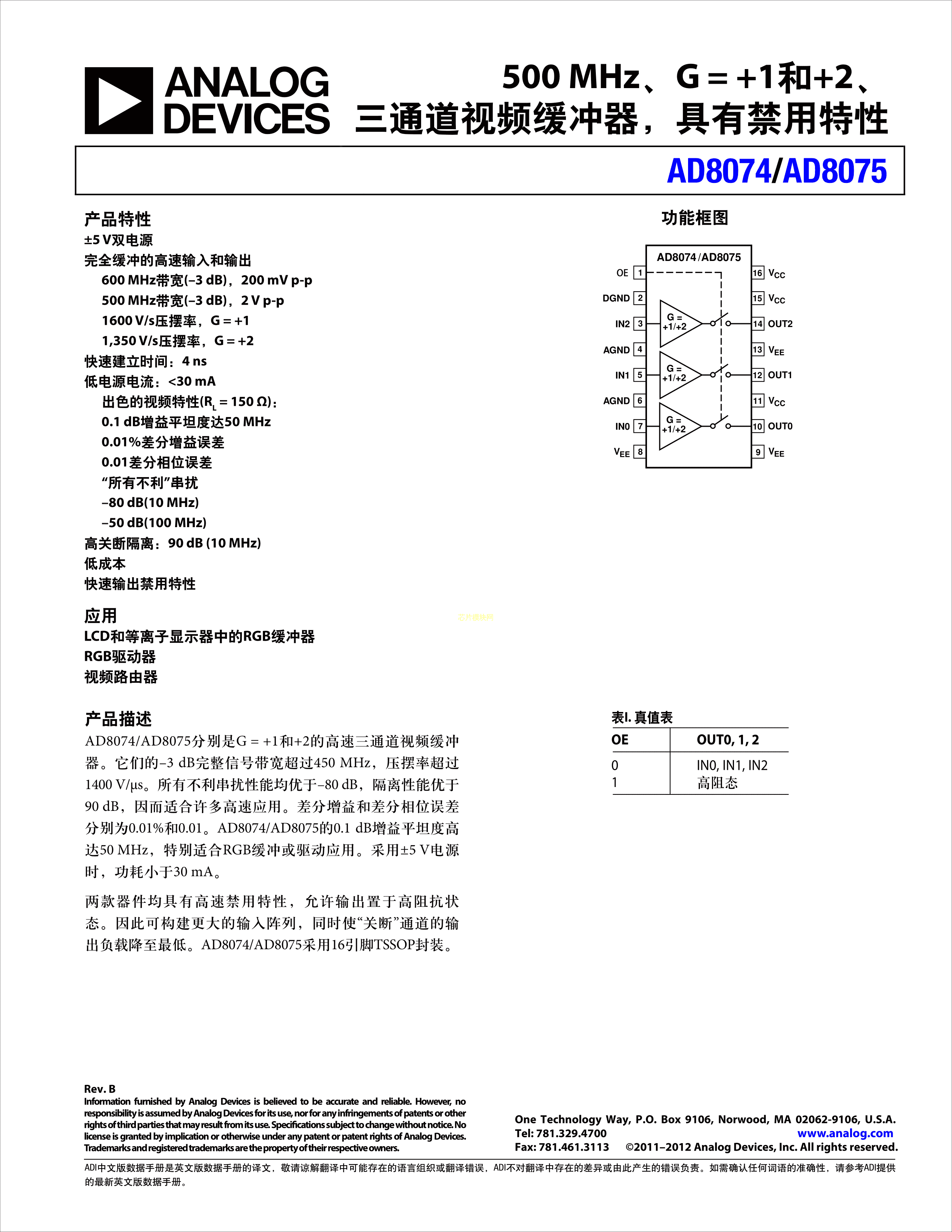 AD8074ARUZ-REEL7数据手册TSSOP-16封装ADI(亚德诺)-LINEARPDF规格