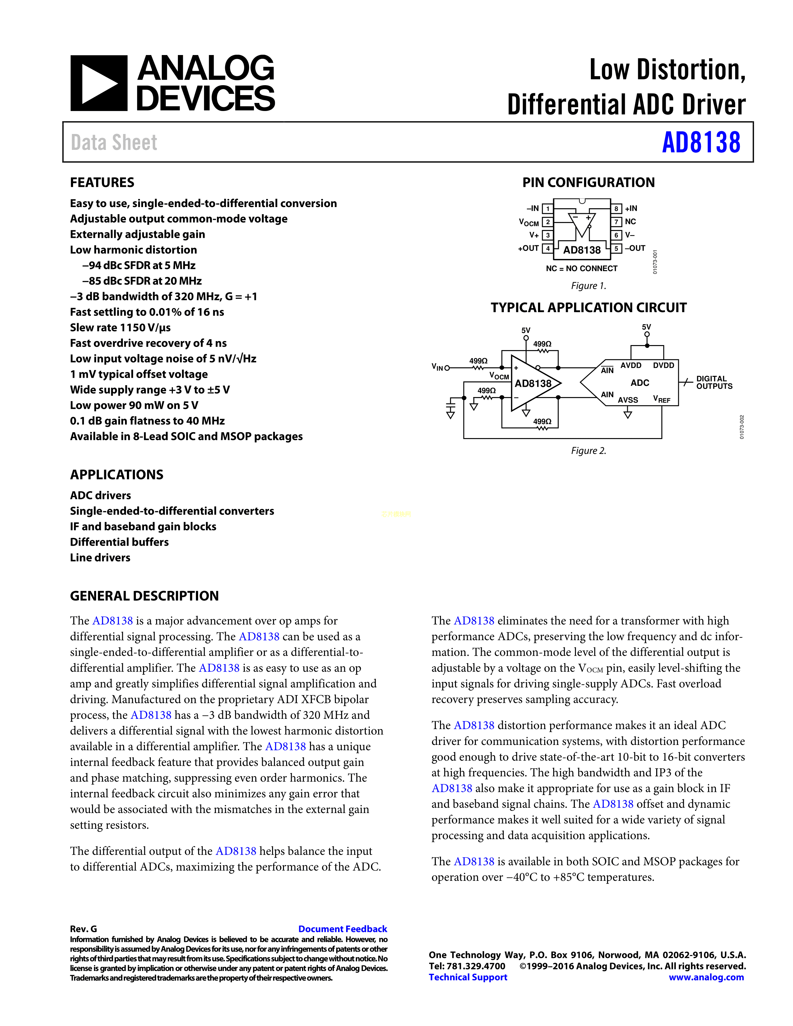 AD8138ARZ数据手册SOIC-8_150mil封装ADI(亚德诺)-LINEARPDF规格书,中英文下载