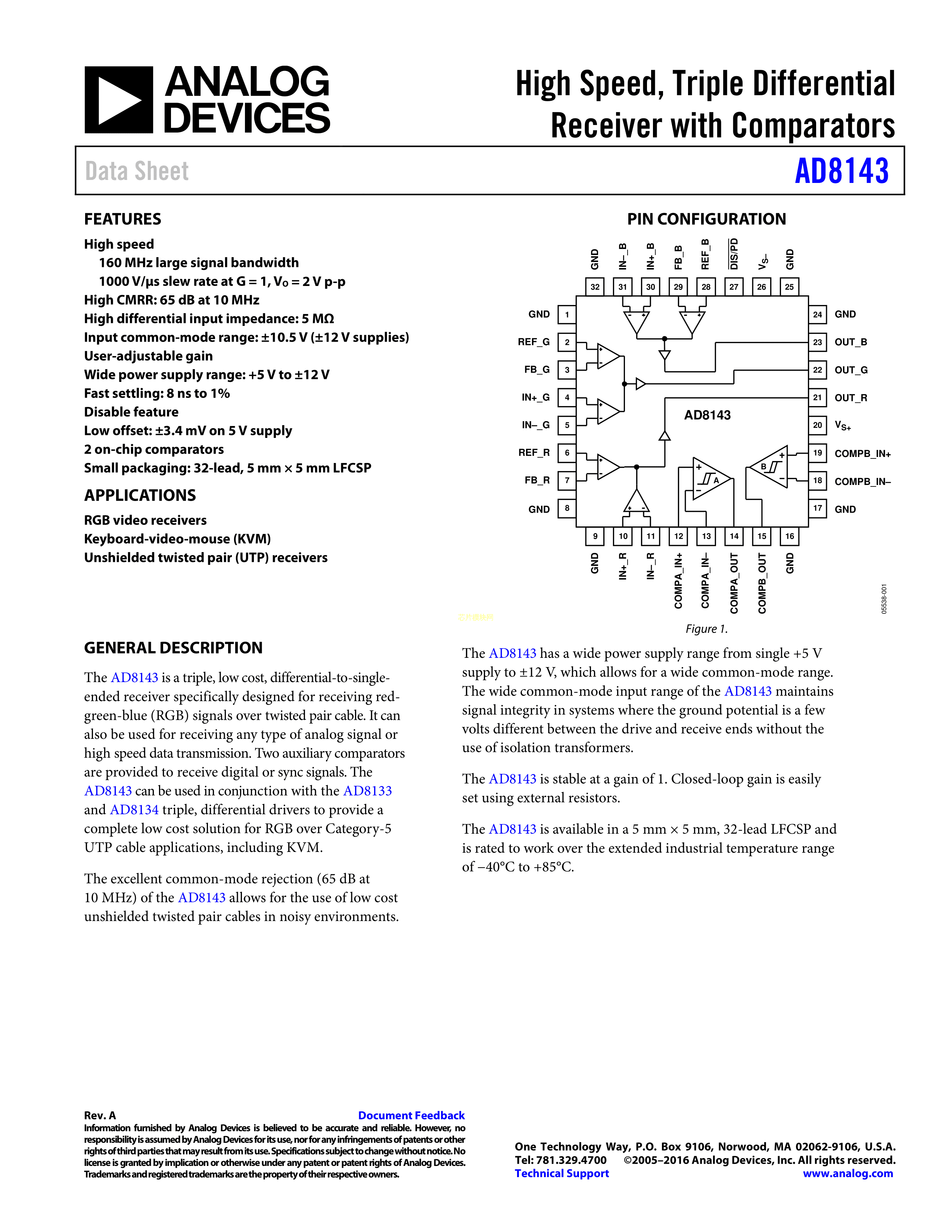 AD8143ACPZ-REEL7数据手册LFCSP-32封装ADI(亚德诺)-LINEARPDF规格