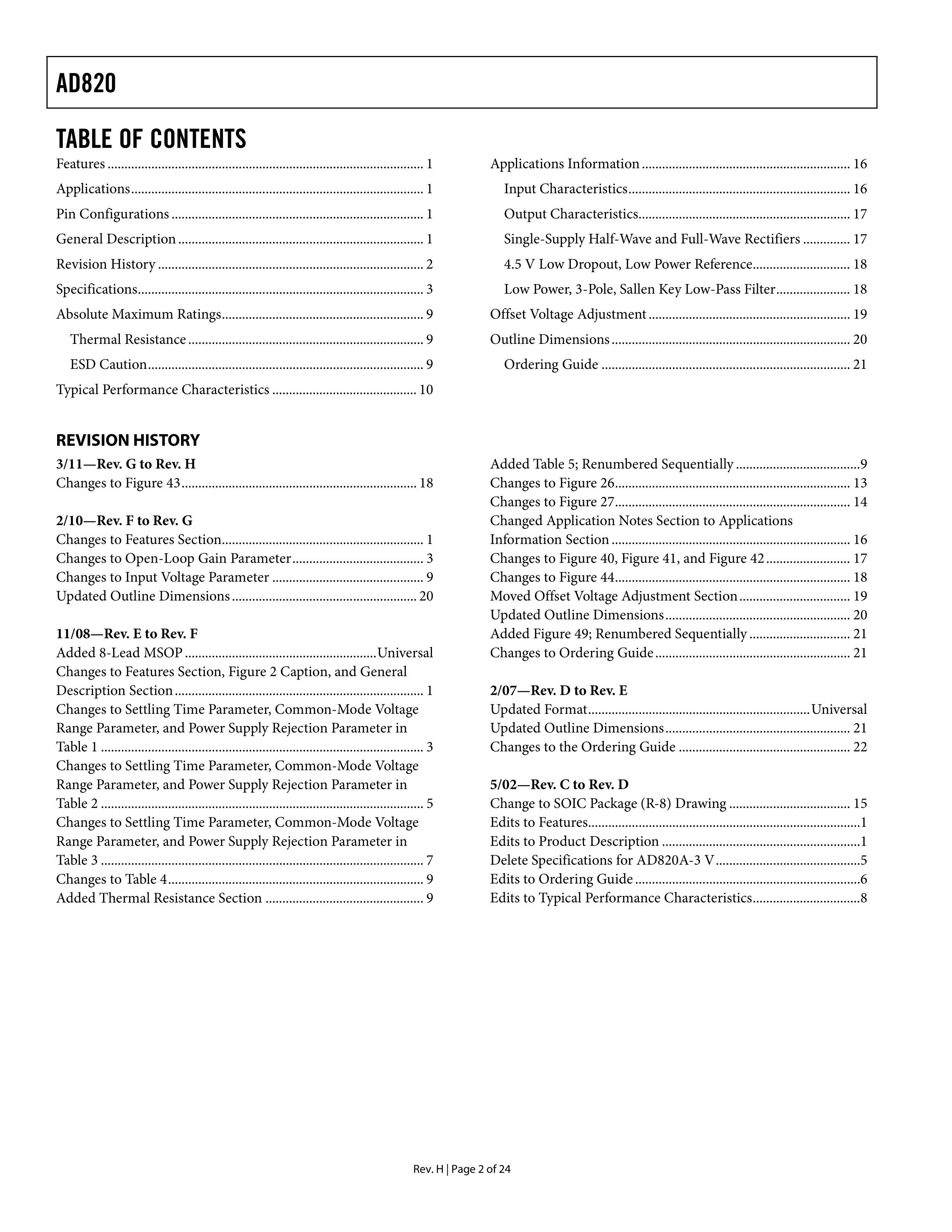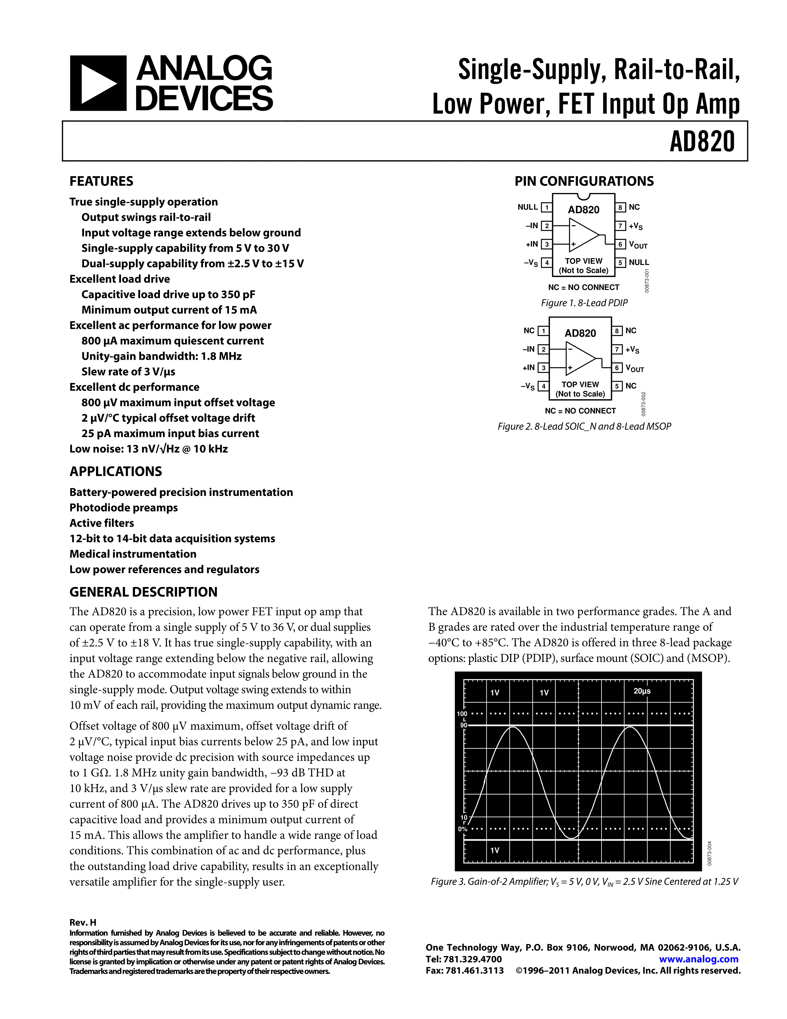 AD820ARMZ-R7数据手册MSOP-8封装ADI(亚德诺)-LINEARPDF规格书,中英文下
