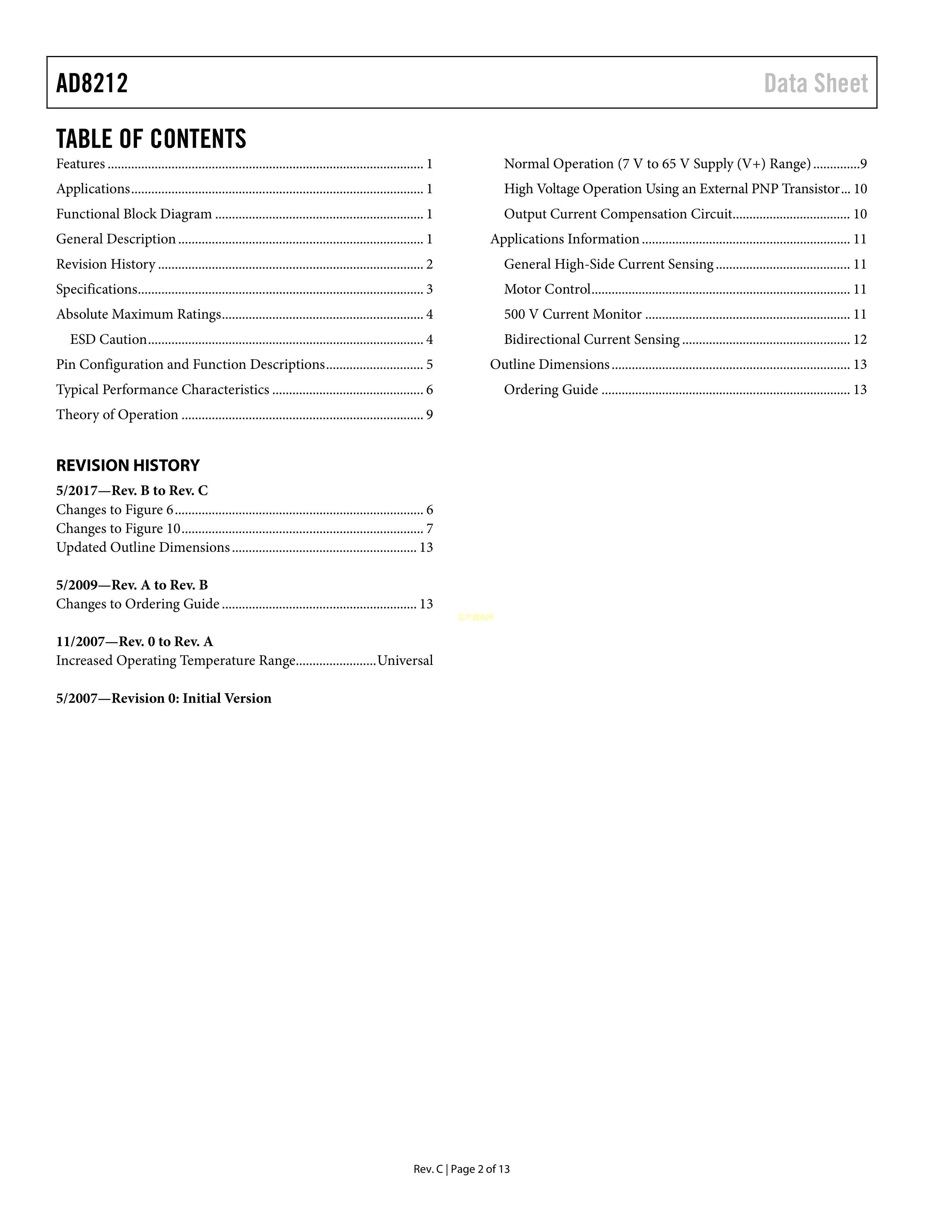 AD8212WYRMZ-RL数据手册MSOP-8封装ADI(亚德诺)-LINEARPDF规格书,中英