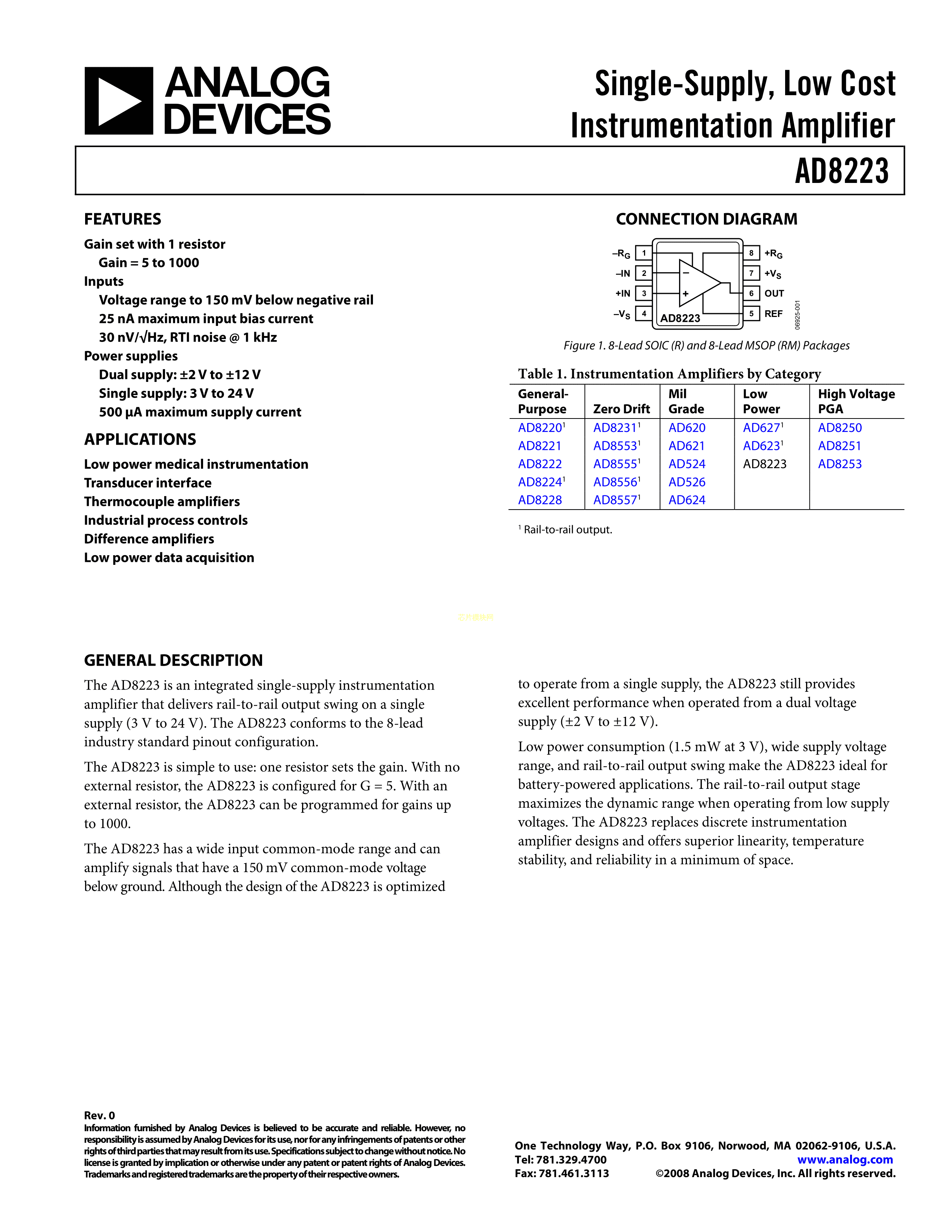 AD8223ARMZ-R7数据手册MSOP-8封装ADI(亚德诺)-LINEARPDF规格书,中英文