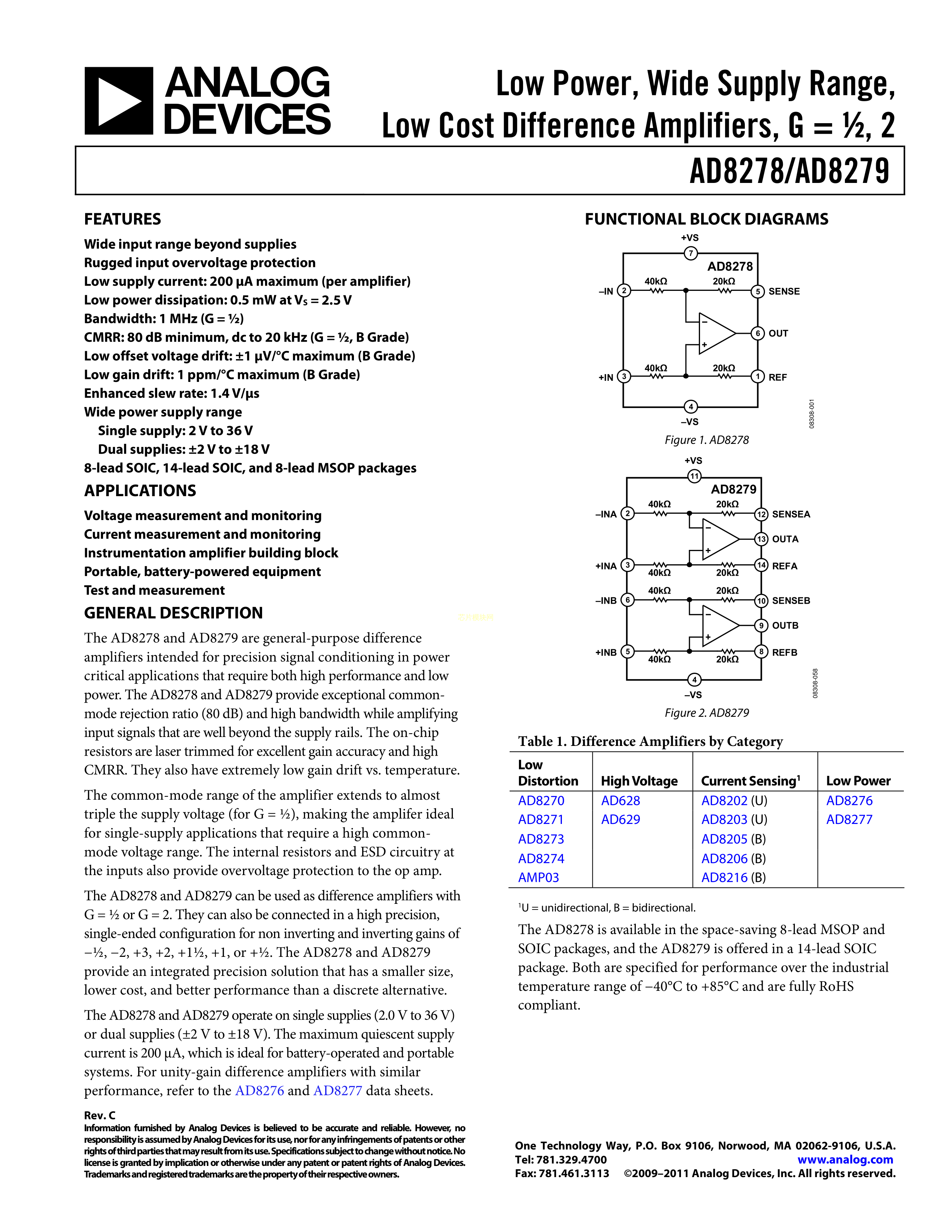 AD8279BRZ-RL数据手册SOIC-14封装ADI(亚德诺)-LINEARPDF规格书,中英文下载