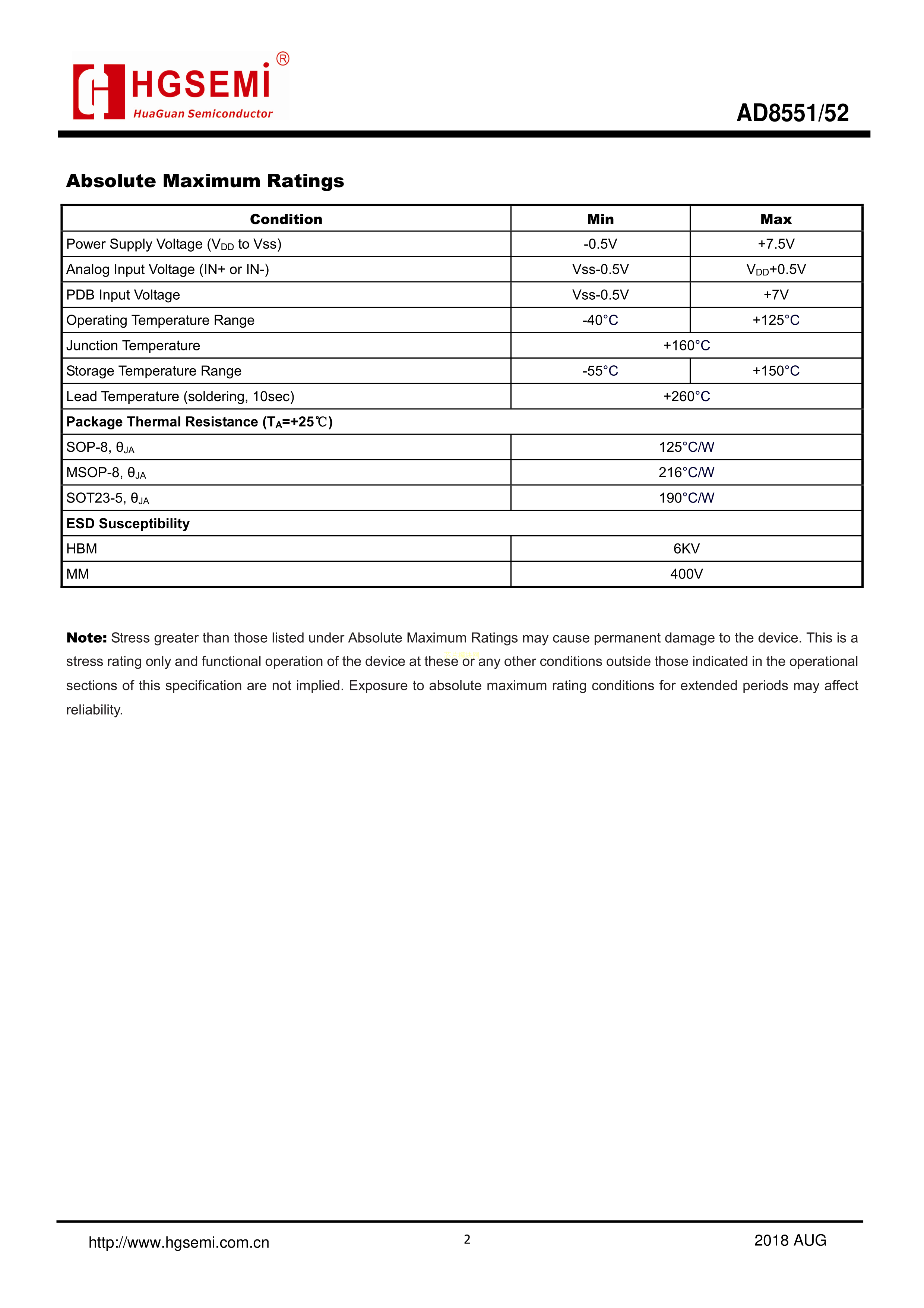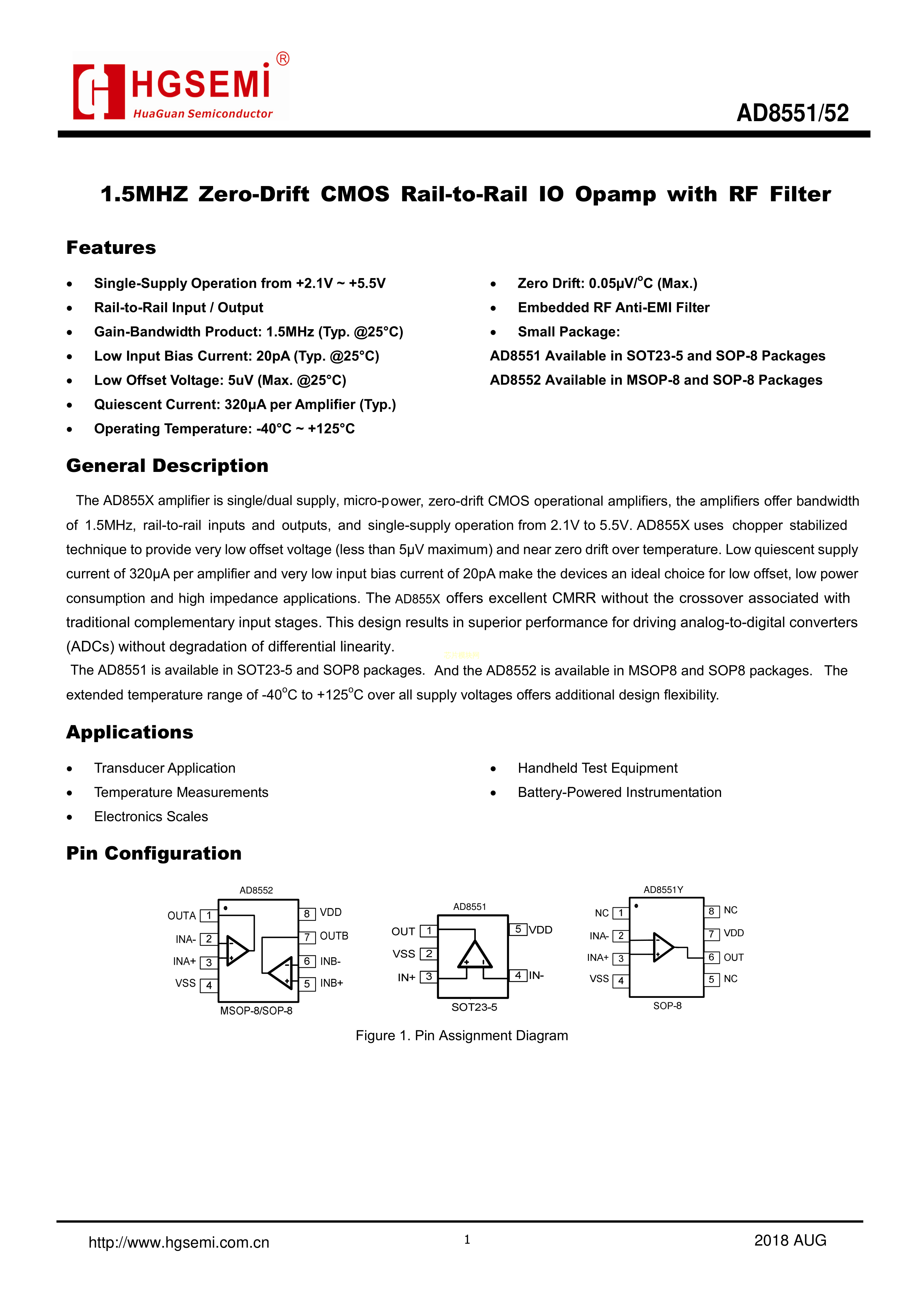 AD8552MM-TR数据手册MSOP-8封装HGSEMI(华冠)PDF规格书,中英文下载