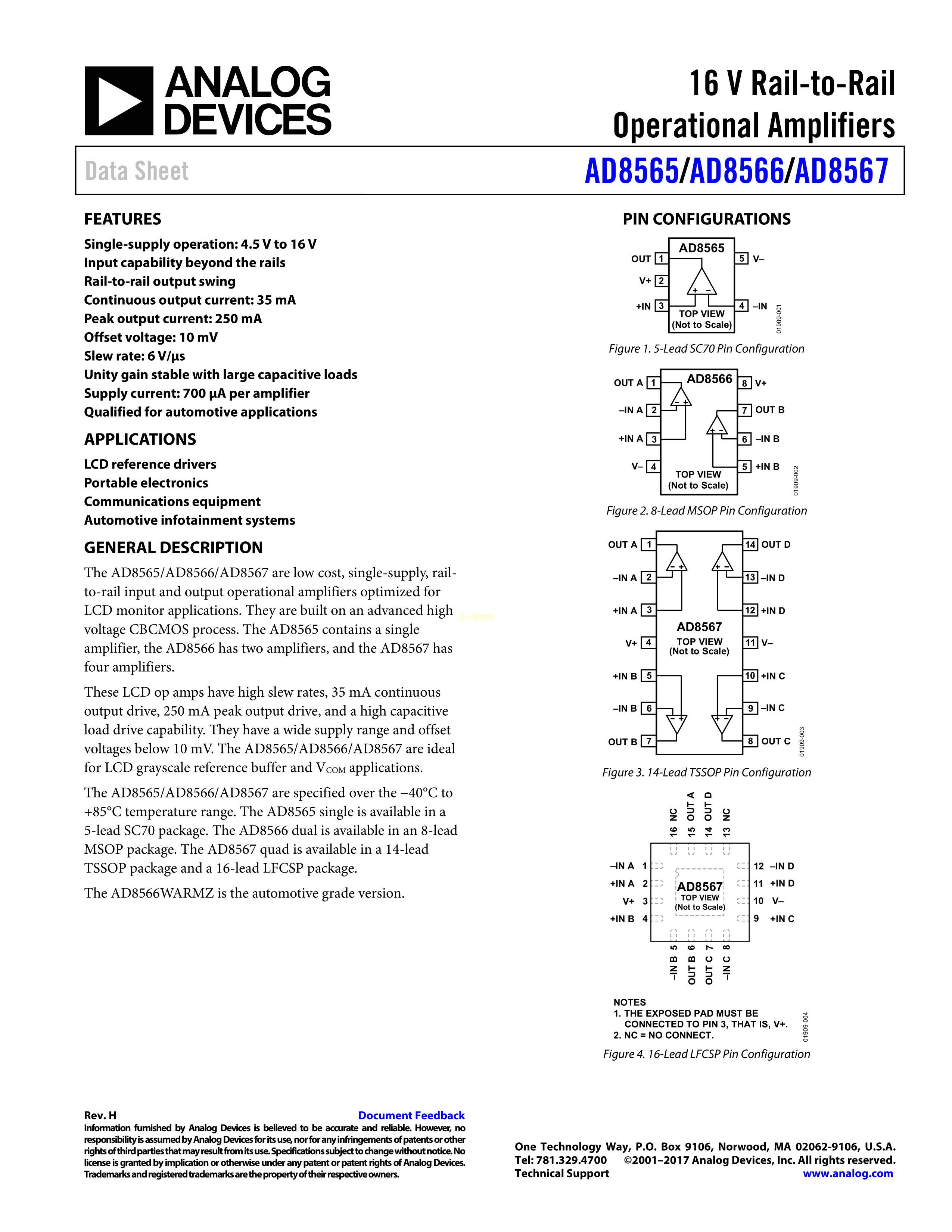 AD8566WARMZ-REEL数据手册MSOP-8封装ADI(亚德诺)-LINEARPDF规格书,