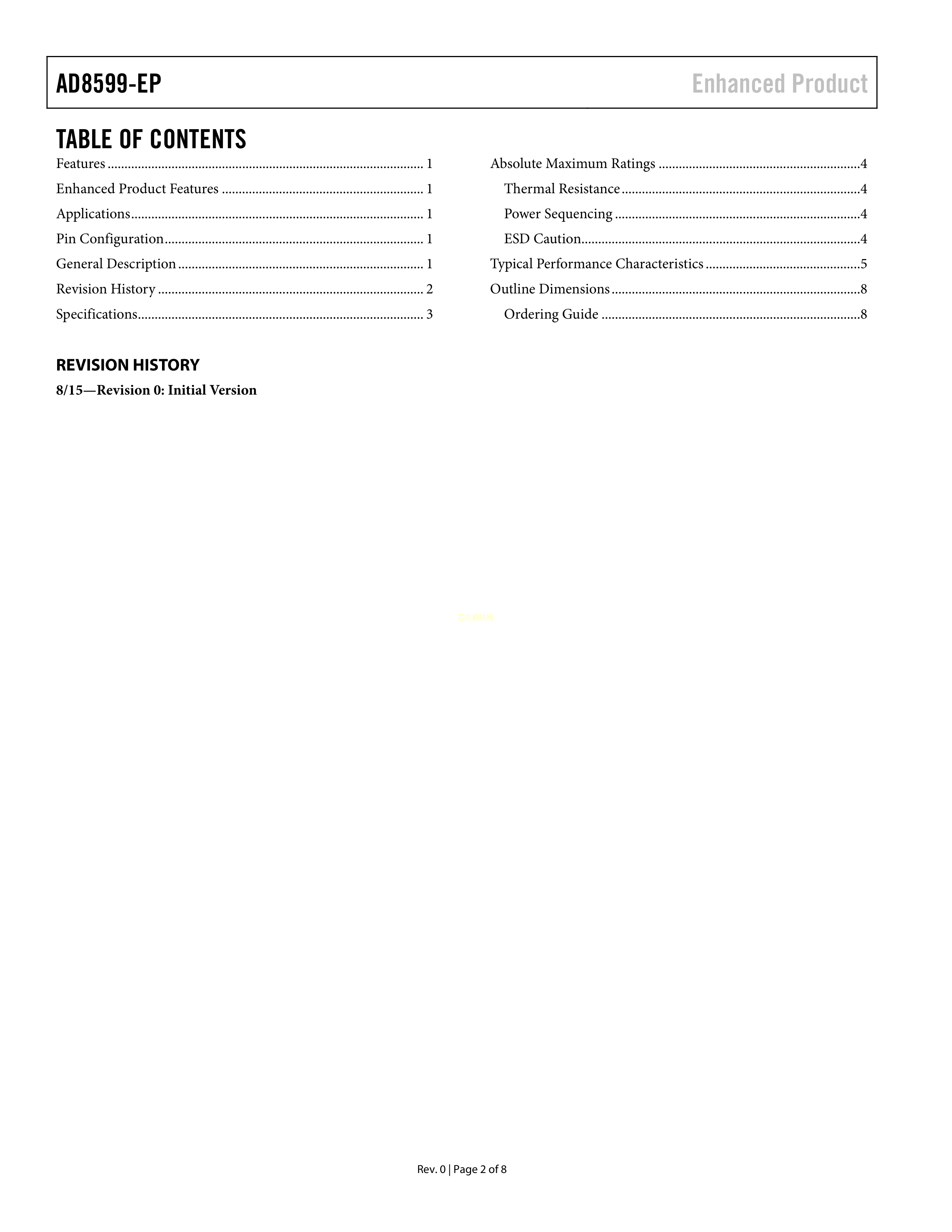 AD8599TRZ-EP数据手册SOIC-8封装ADI(亚德诺)-LINEARPDF规格书,中英文下