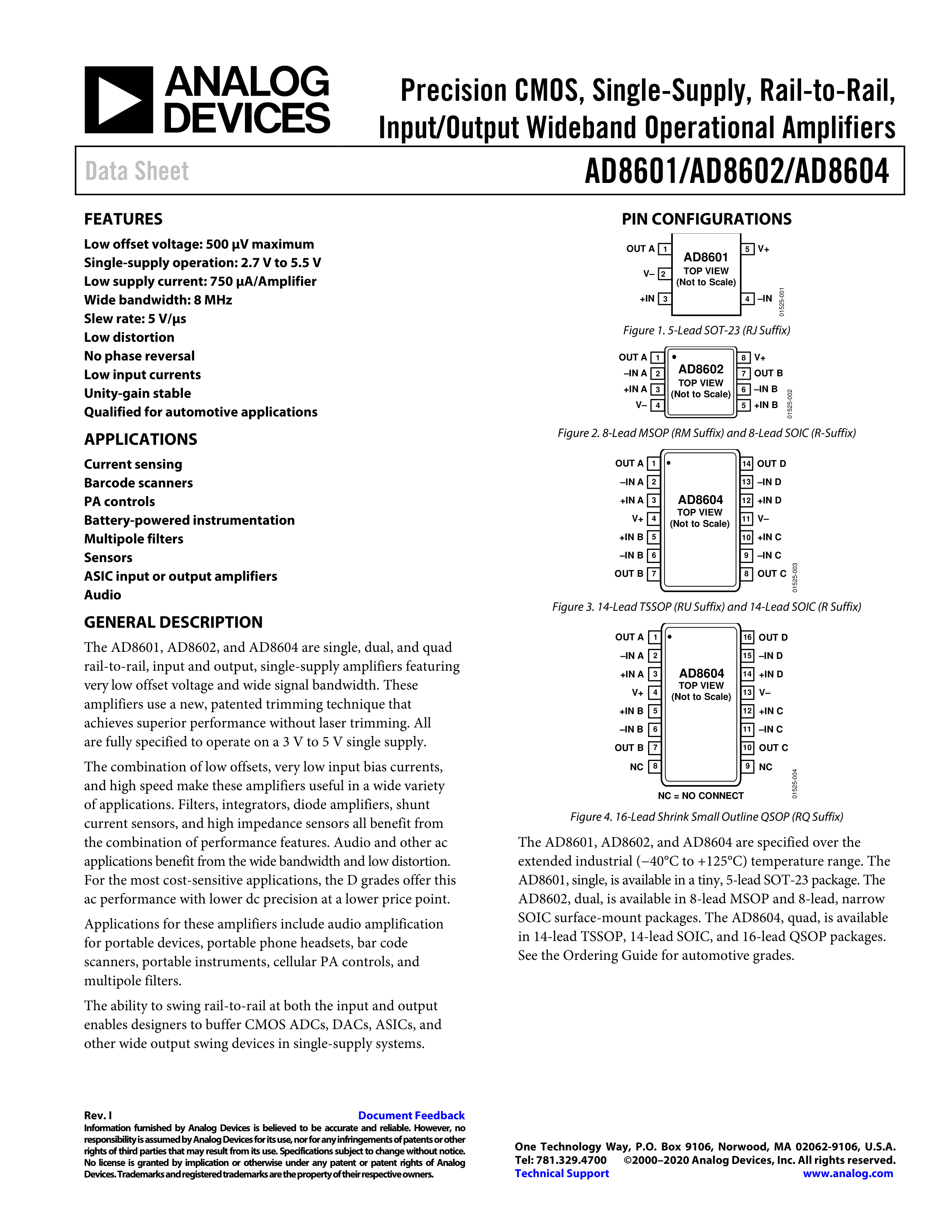 AD8604DRZ-REEL数据手册SOIC-14封装ADI(亚德诺)-LINEARPDF规格书,中