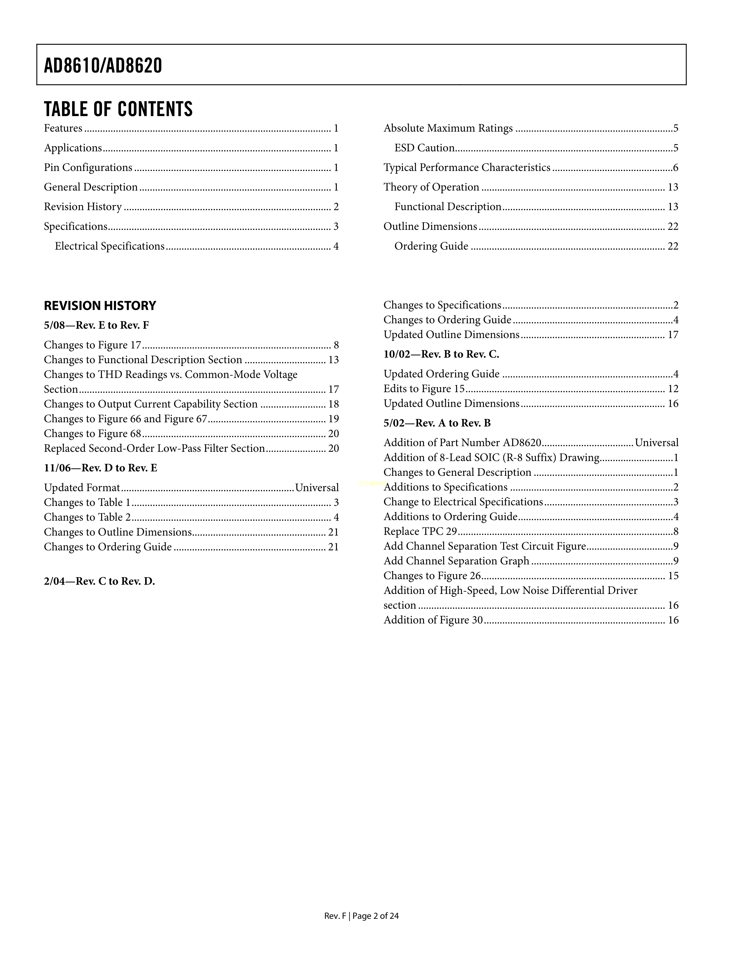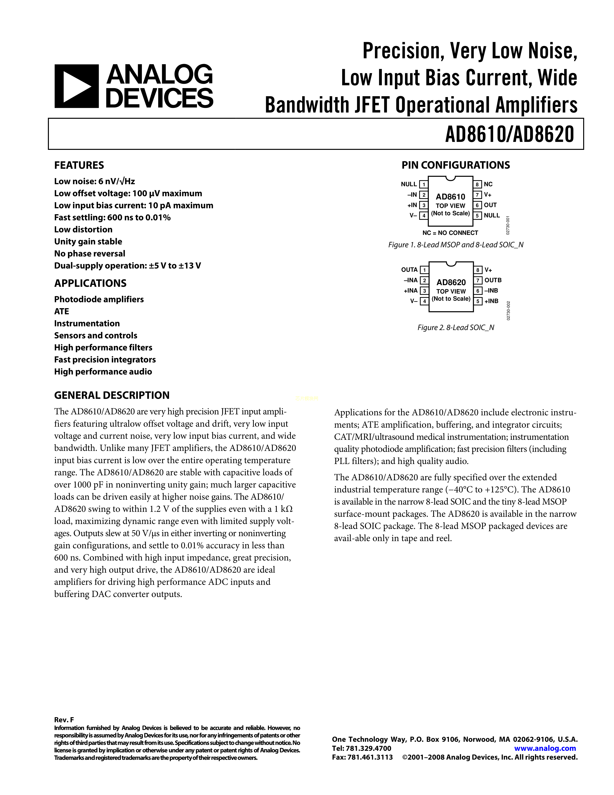 AD8610ARMZ-REEL数据手册MSOP-8封装ADI(亚德诺)-LINEARPDF规格书,中