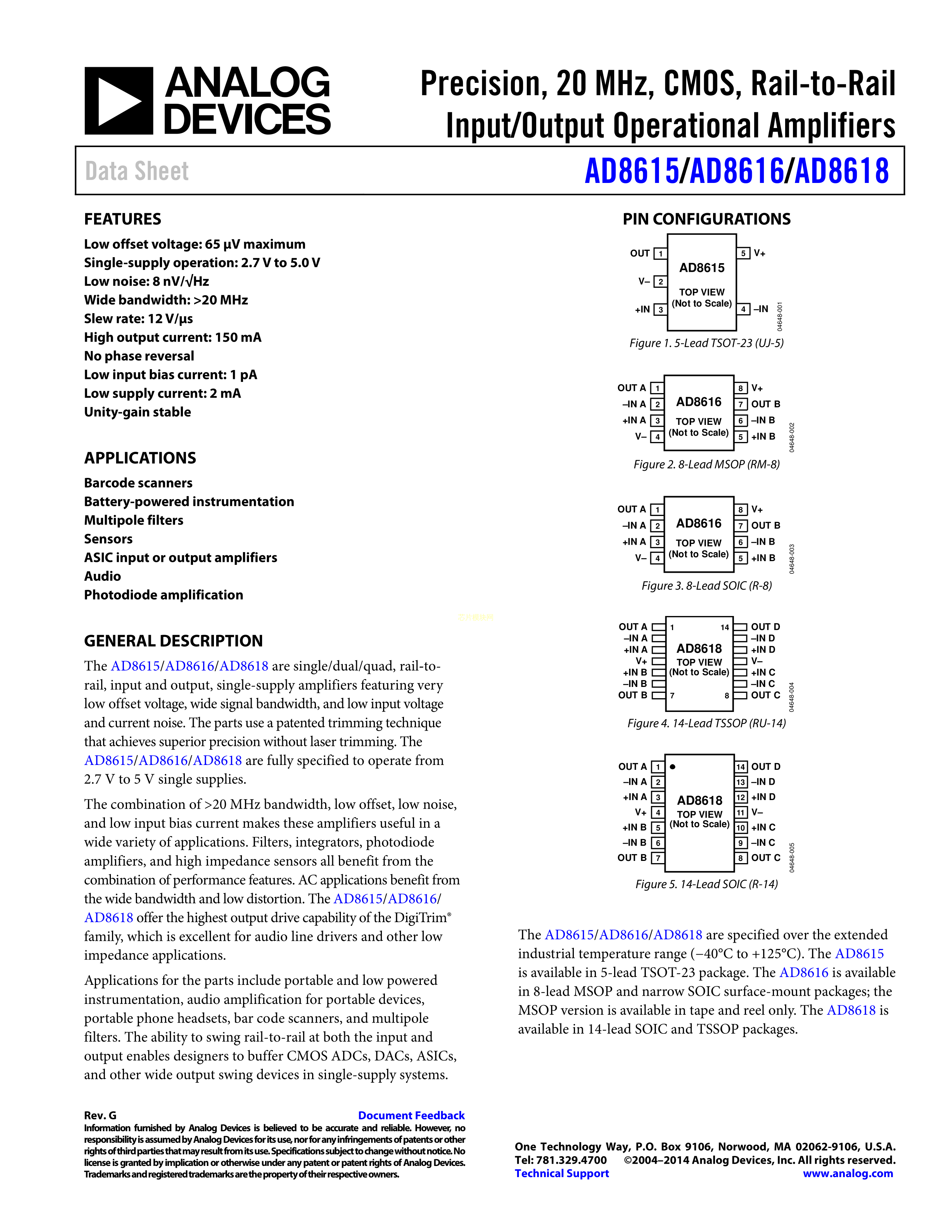 AD8616ARMZ-REEL数据手册MSOP-8封装ADI(亚德诺)-LINEARPDF规格书,中