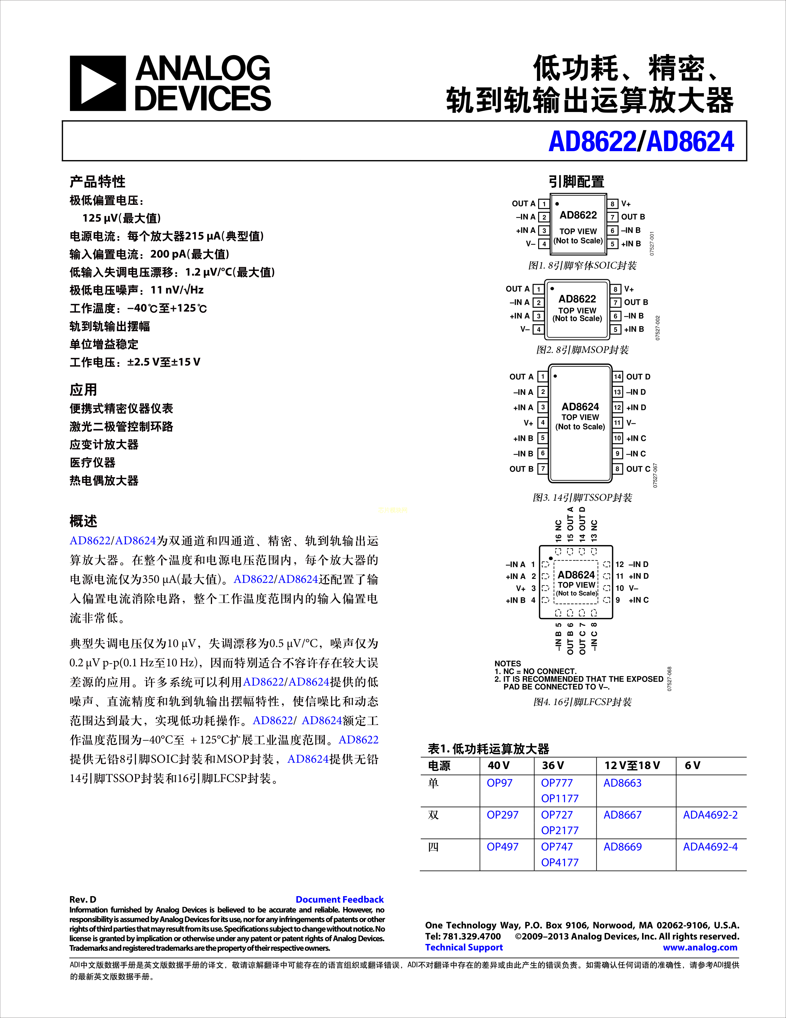 AD8622ARZ-REEL7数据手册SOIC-8_150mil封装ADI(亚德诺)-LINEARP