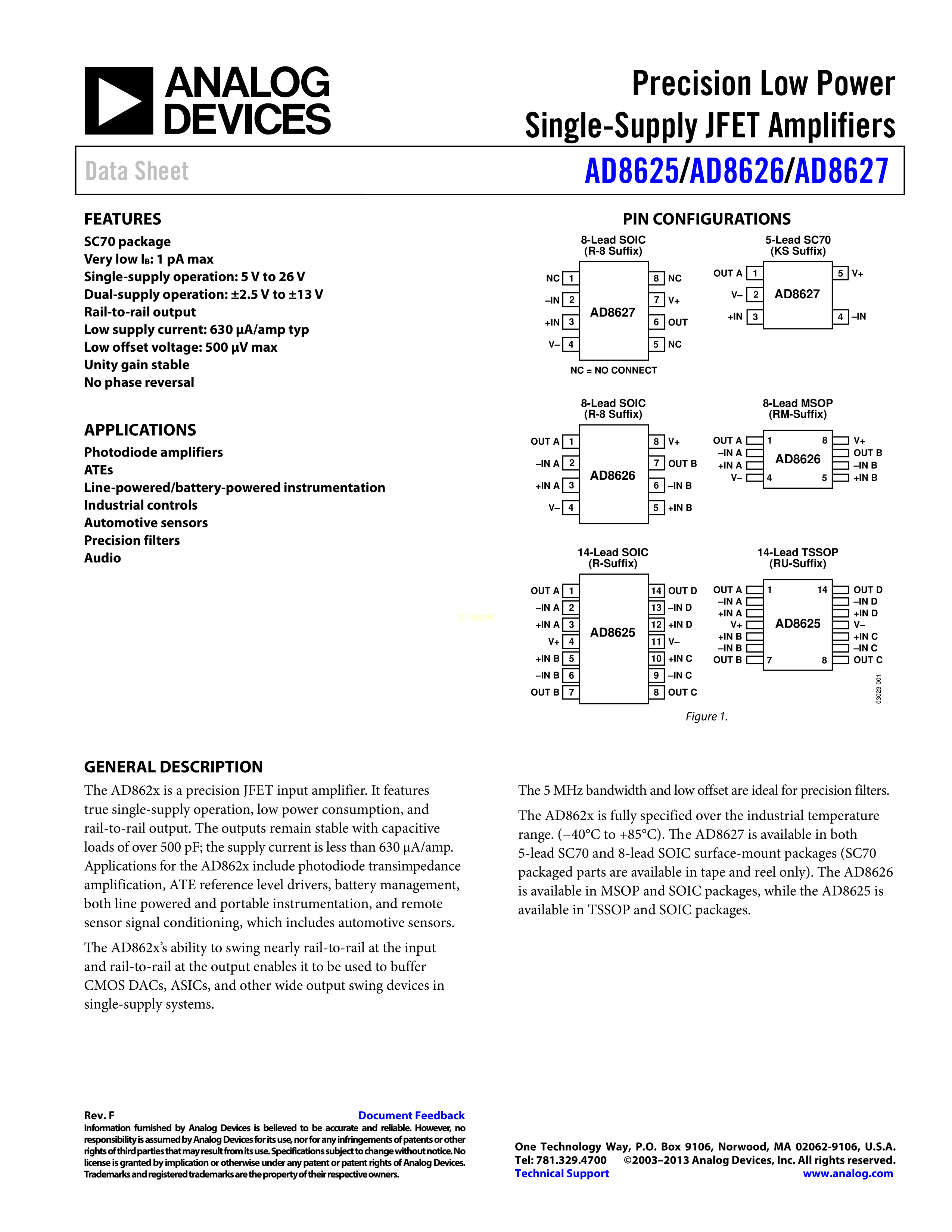 AD8627AKSZ-REEL7数据手册SC-70-5封装ADI(亚德诺)-LINEARPDF规格书